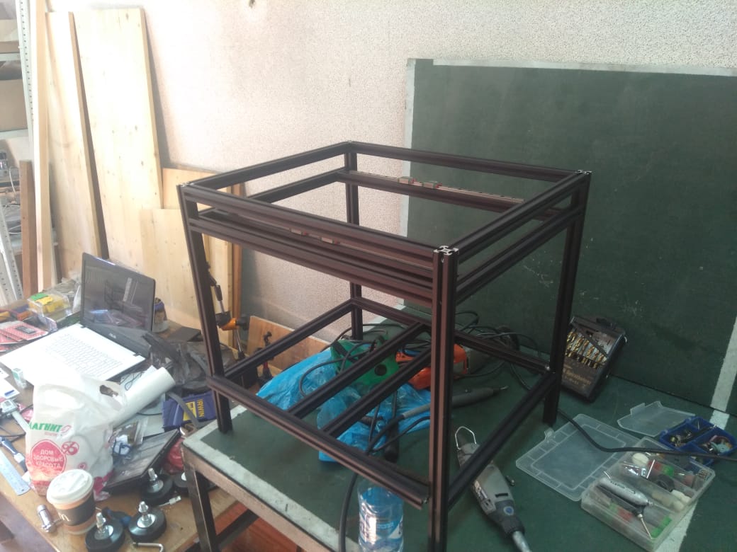 Оформили болтами основание для "кабинета" станка. И заодно рабочее пространство для клавиатуры и мыши.