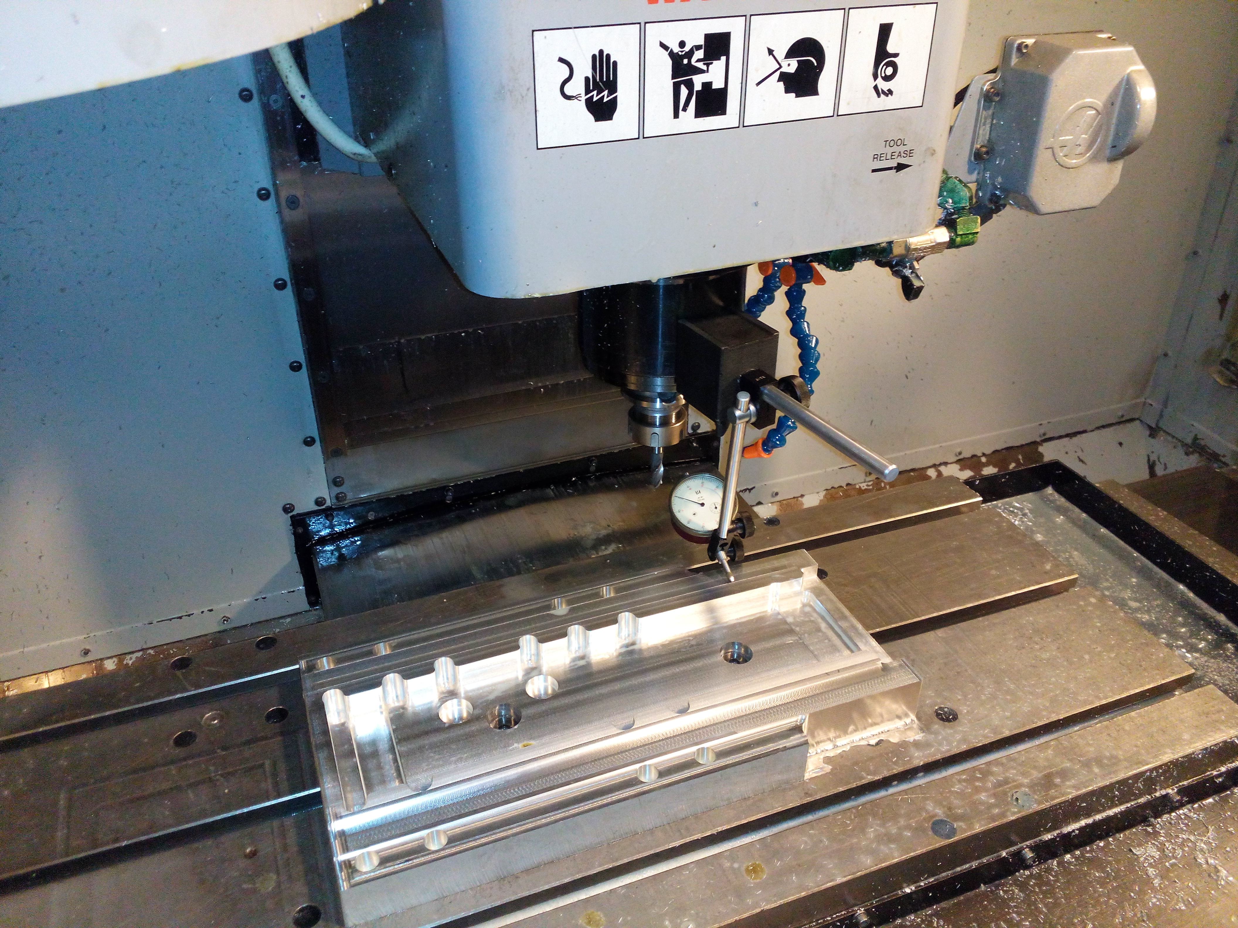 Вчера вечером ошибка вышла, на одном из внутренних углов под опоры швп, выбрали неправильно траекторию обработки, фреза резко загрузилась, и сдвинулось оказывается на пару соток деталь.