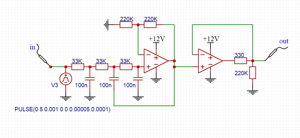 Да, отрицательное там будет, потому что это будущий конвертер pwm/dir >>> +-10V. Ща проверю твою схему...Lunatic писал(а):Странный результат. Я делал простой ФНЧ 3-го порядка на 1 операционнике и 1 повторитель на выходе, все точно работало. Ну и чтобы около 0 точно работало нужно отрицательное питание.
