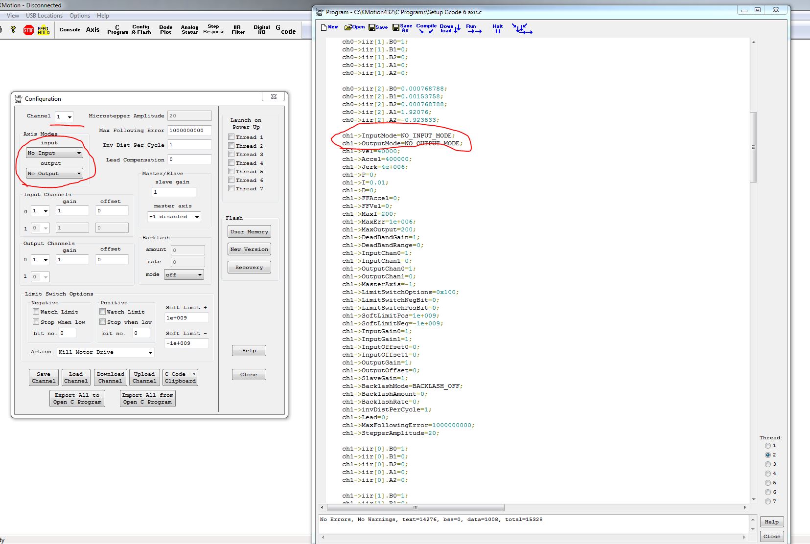 может надо было прописать Ch1 и указать отсутствие входящих и выходящих сигналов? или прописать Ch1 как и все остальные и просто выбросить его из интерфейса. а раз в G коде не будет команд оси Y , то и хрен с ней , пусть болтается в памяти?