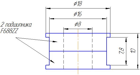 шляпка болта(обычно М8 под подшипник 608 или 688)