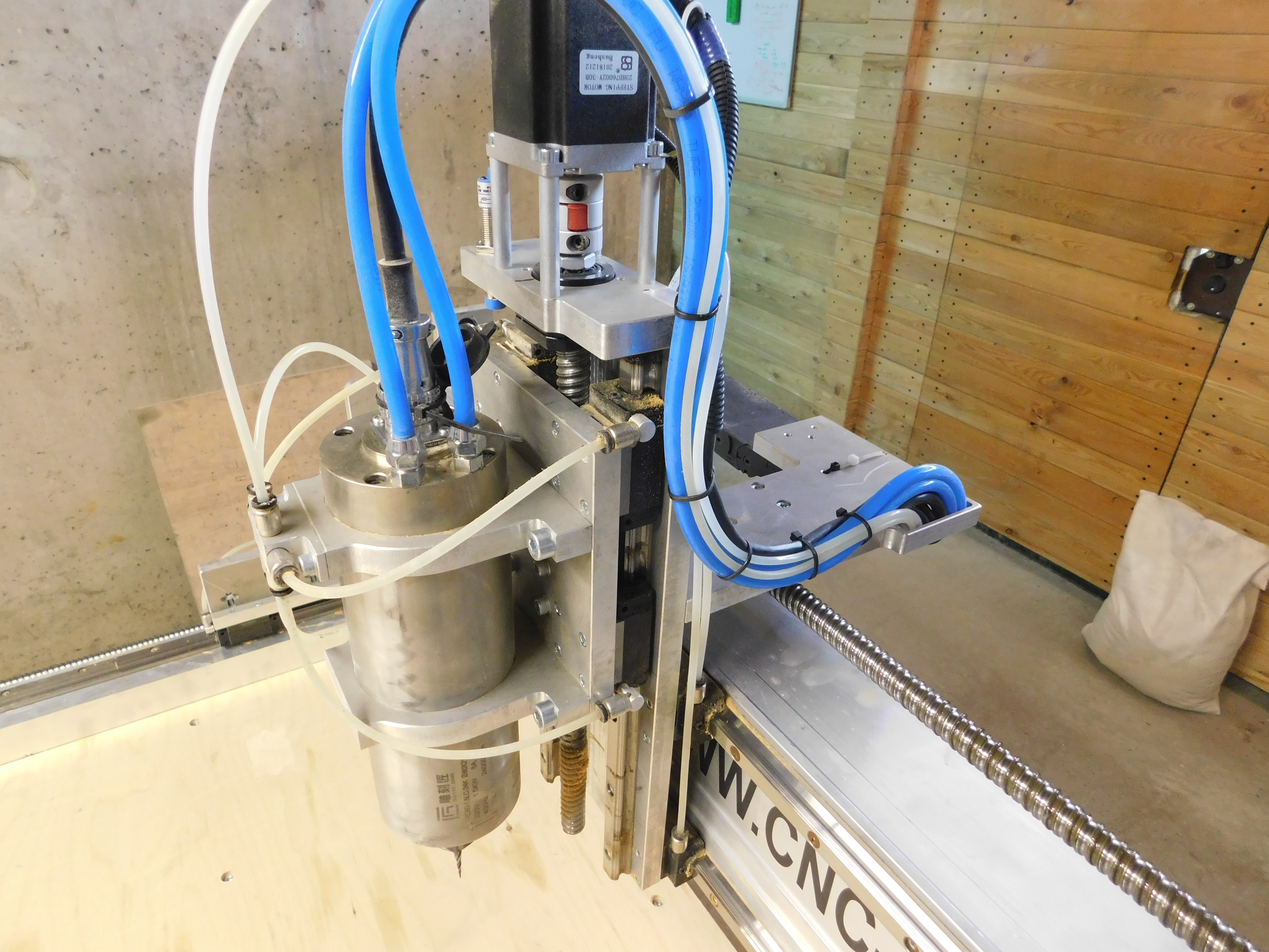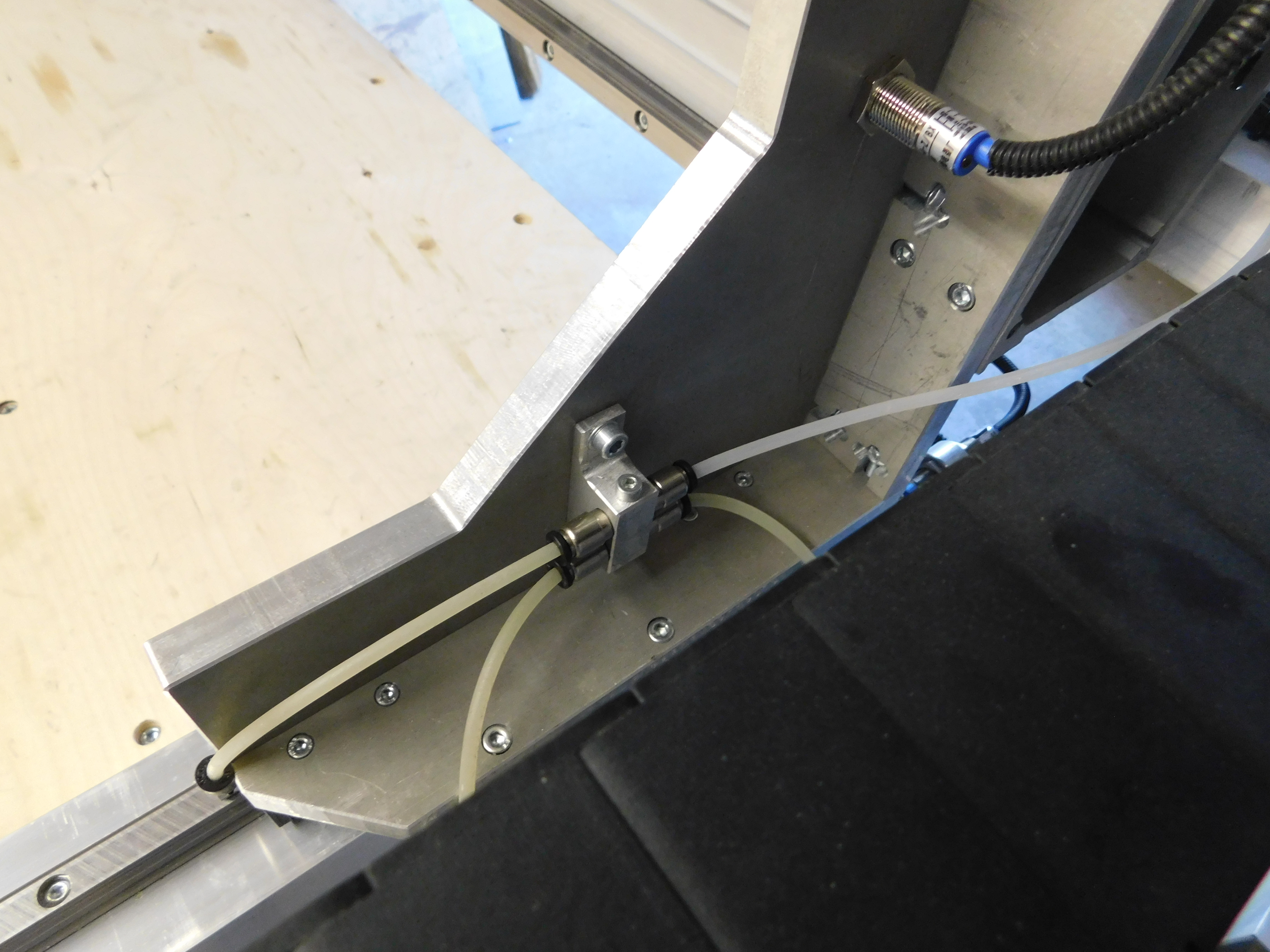 Немного доработал конструктив шприца, чтобы отказаться от лепесткового зажима(из него смазка повсюду лезет). Единственное, что пока не совсем хорошо: смазка доходит до узлов с непостоянной скоростью. Но это, я думаю решаемо, если установить коллектор с регулировкой расходов. Да и к тому же к каждому узлу (их 4шт) сейчас подходит трубка от центрального коллектора, можно её отсоединить и шприцевать прямо туда. Вводы в каретки пришлось делать самодельные,тк с резьбой М4 и с наклоном 90гр не нашлось.