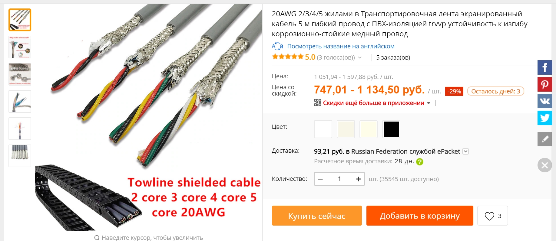 разобрался с сечением , заказал на Али ...вроде как специально для кабель-каналовшпиндель писал(а):подскажите, какое выбрать сечение витой пары для шаговика nema23 на 4 ампера ?