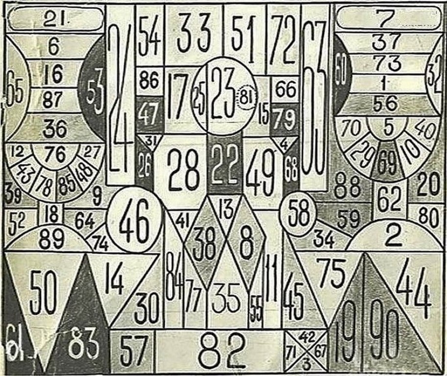 Найдите на этой таблице последовательно цифры от 1 до 90 включительно.