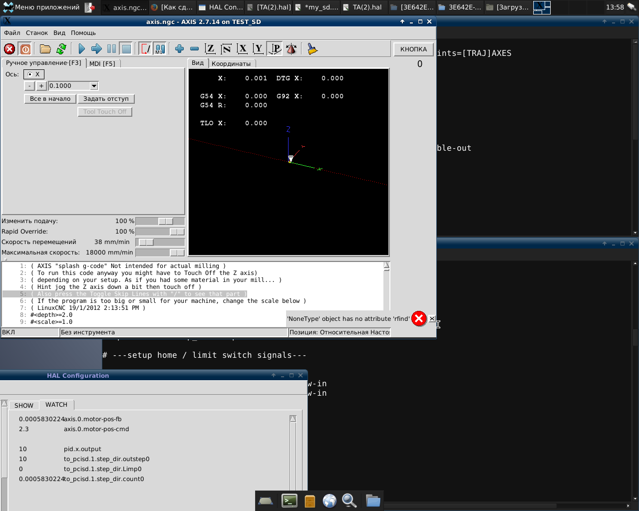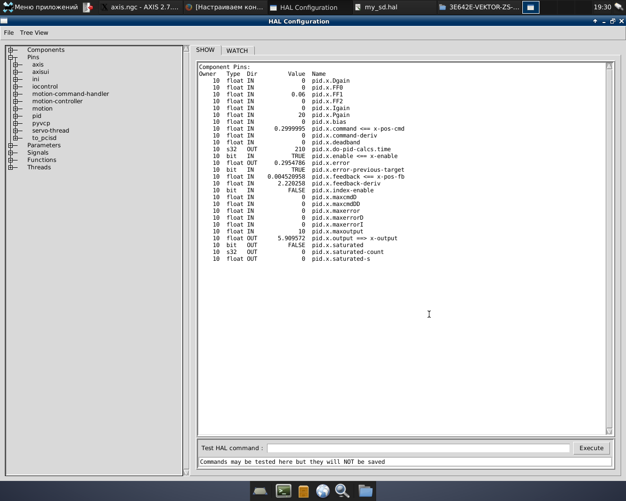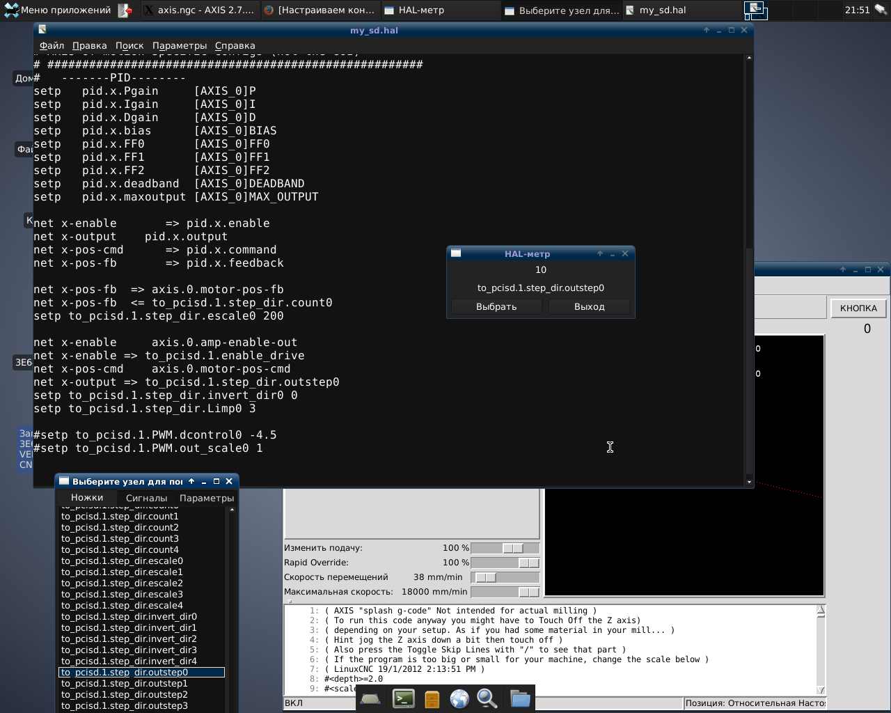 Пару раз случалось, что при первом проходе станок делал правильный шаг, но после отхода и возврата в начальную точку - снова шаг 10мм. Такое впечатление, что резание происходит на такой же подаче как и отход в начало. Как-будто индексная метка не видится, или не выставляется spindle-index-enable. Кстати index-enable я мониторил в HAL-Show, и там ничего не менялось. Так же как и etcomb.1.feedback.encoder_en2 не меняется.