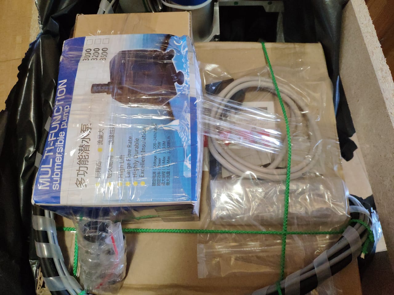Приехал Микроб, упакован отлично. Ящик-обрешётка из ДСП, сам станок привинчен здоровыми болтами, всё внутри упаковки прихвачено хомутиками и обвязано, укутано в чёрную плотную плёнку.