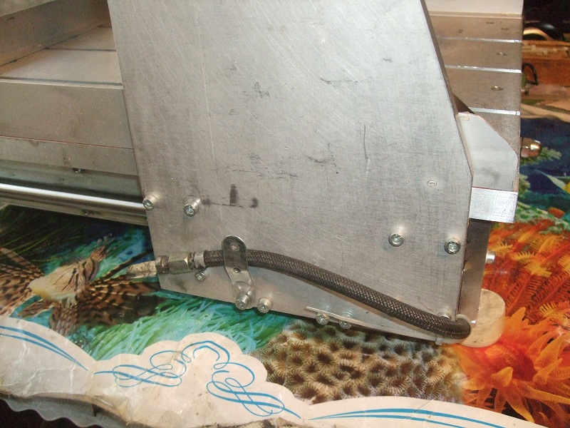 В ходе сборки станок был немного доработан под мои запросы.Добавлен бортик из алюминиевого уголка чтобы стружка не разлеталась,установлен шпиндель водяного охлаждения 800w.Под станину подставлены виброопоры - резиновые отбойники для дверей,куплены в хозтоварах.
