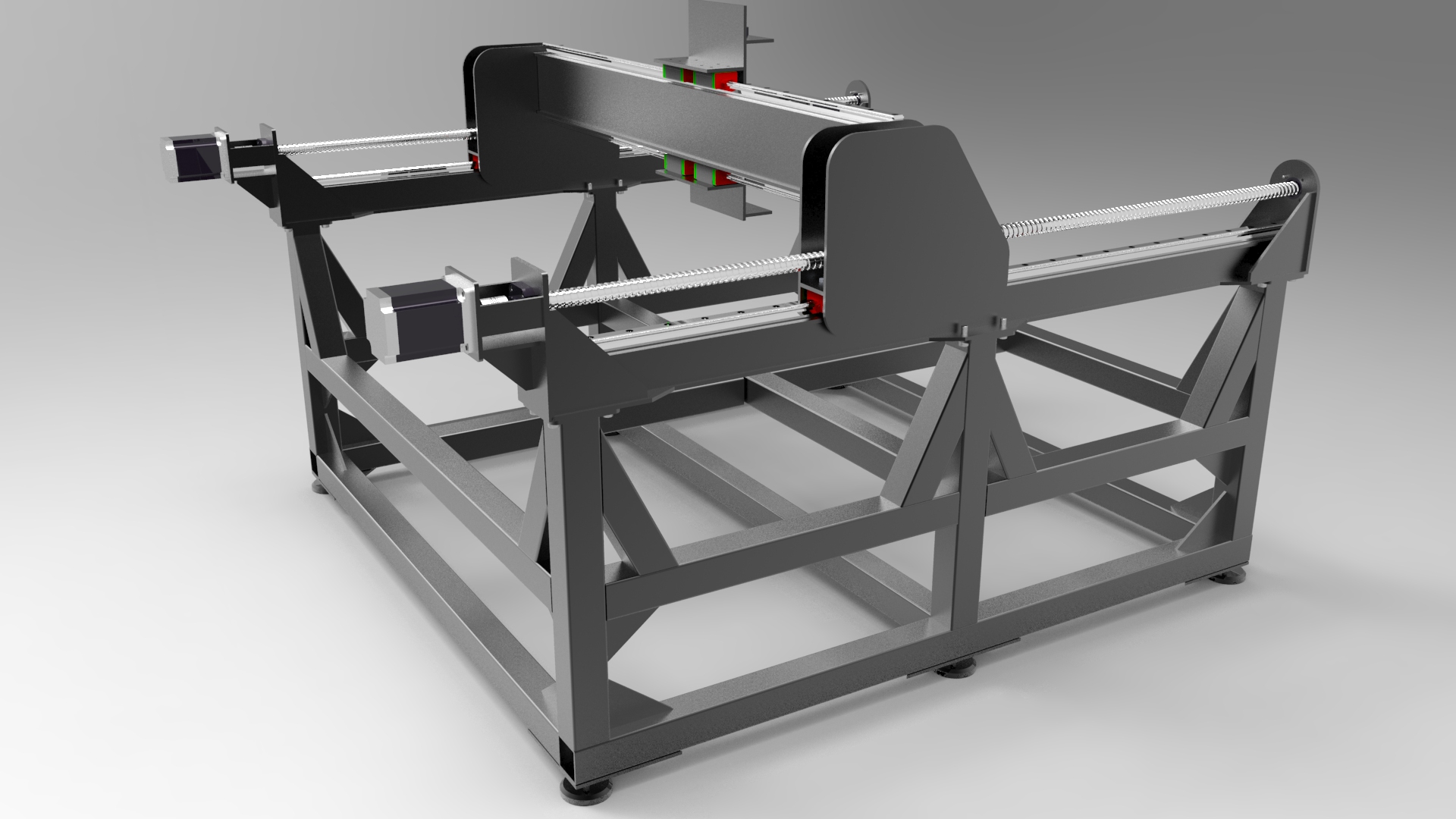 Почему у станины, нет никакой связки, кроме, как самим порталом? Да и зачем эти ножки, как у табуретки? Станок с такой станиной - не сможет работать!