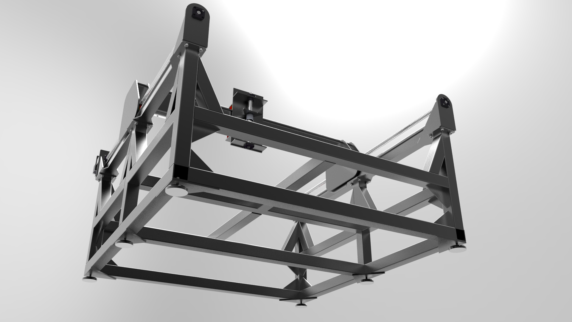 Станина ещё не готова. В первую очередь интересует Ваше мнение по поводу конструкции. Это не ножки. Просто не придумал ещё как лучше сделать под опоры винтов. Можно сделать ножки из профильной трубы 80х80, вывести выше и в ней установить опоры, тогда в ней будет проблематично сделать симметричное отверстие относительно винта.