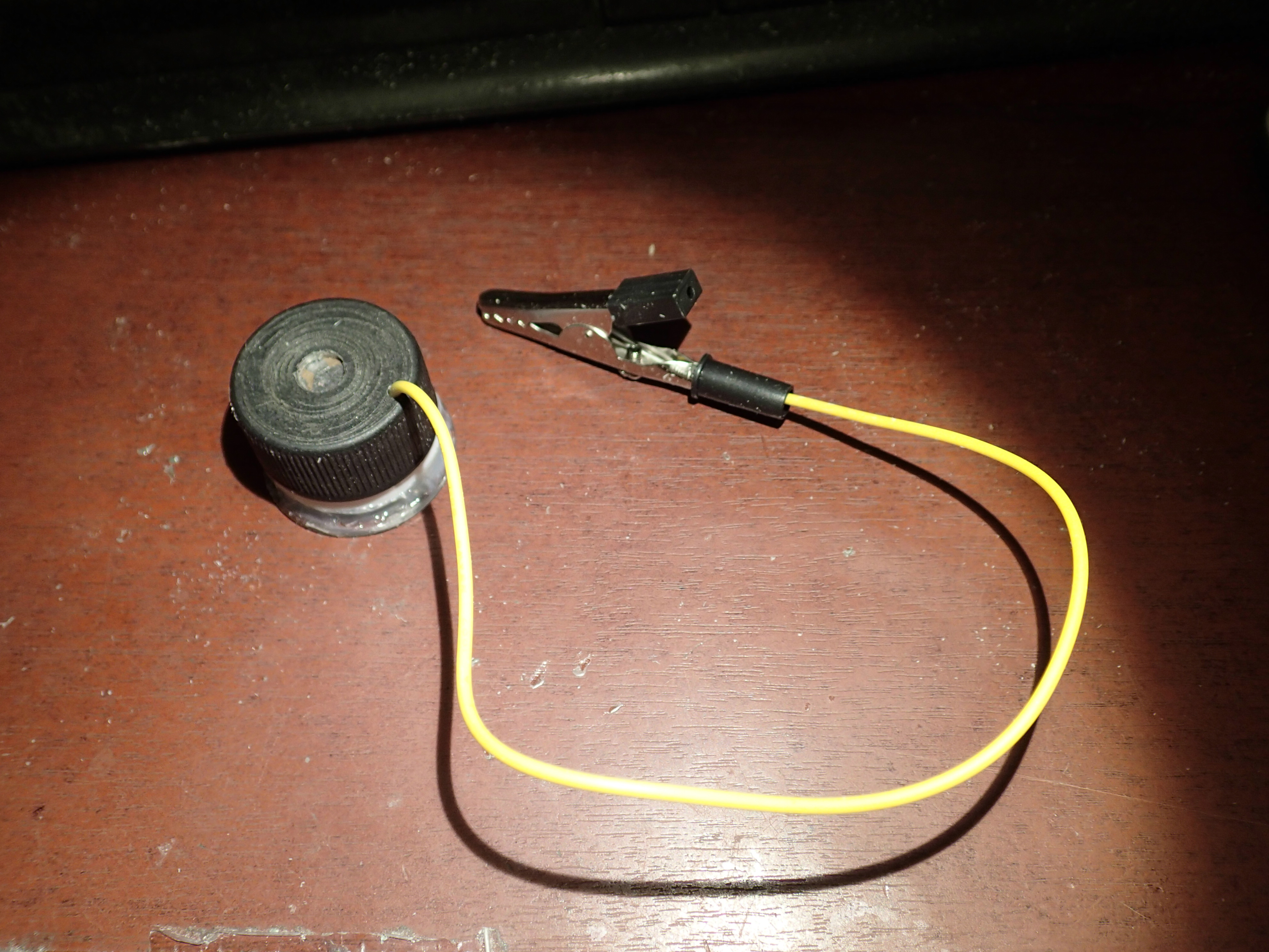 Понадобилась монета, провод, крокодил, пружина, и бутылка с крышкой.