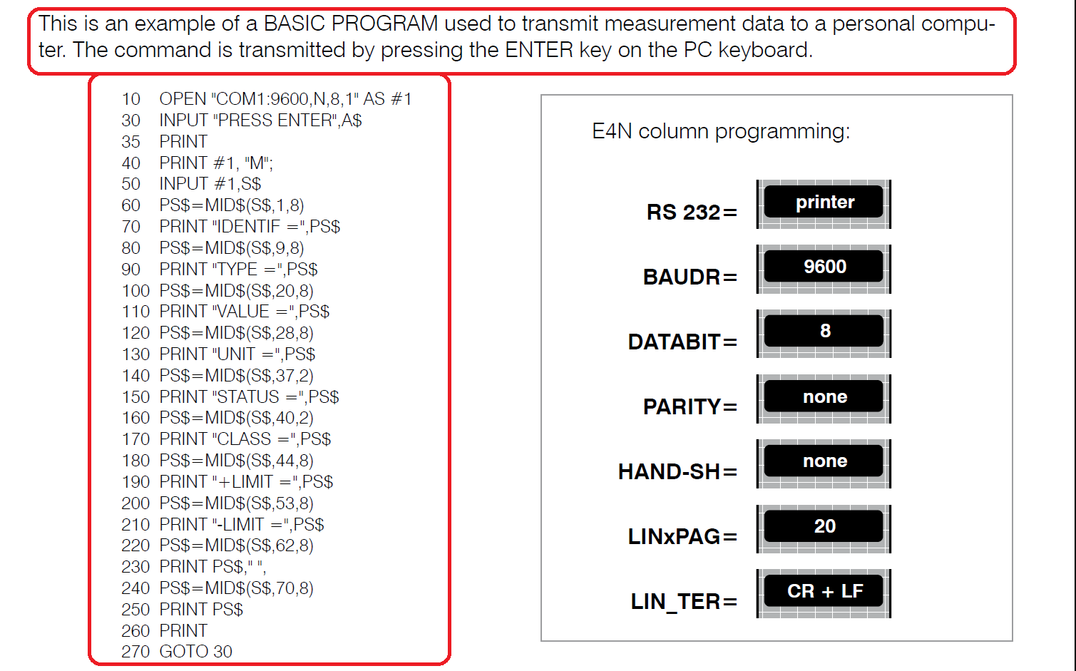 50 PRINT #1, "r"; : GOSUB 100           ' the gage value into the computer
