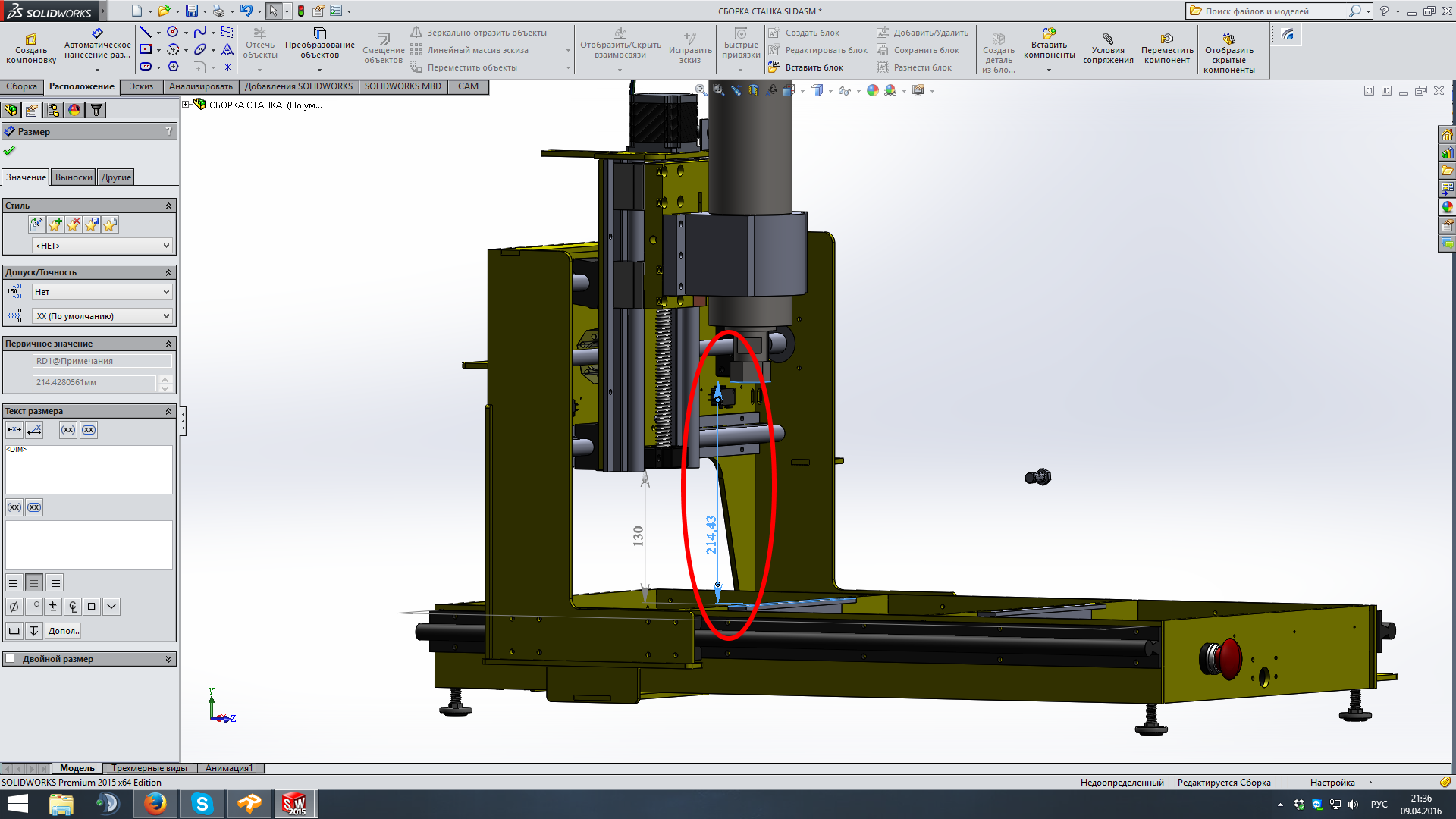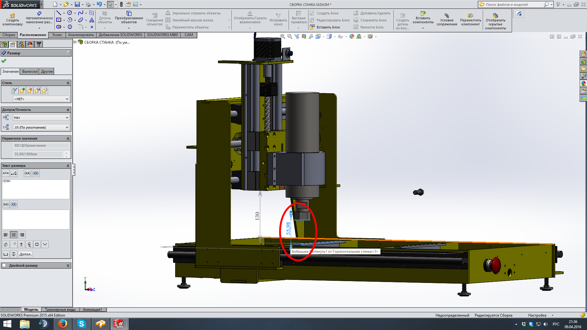 Вот максимально поднятая каретка со сверлом длиной 105мм:
