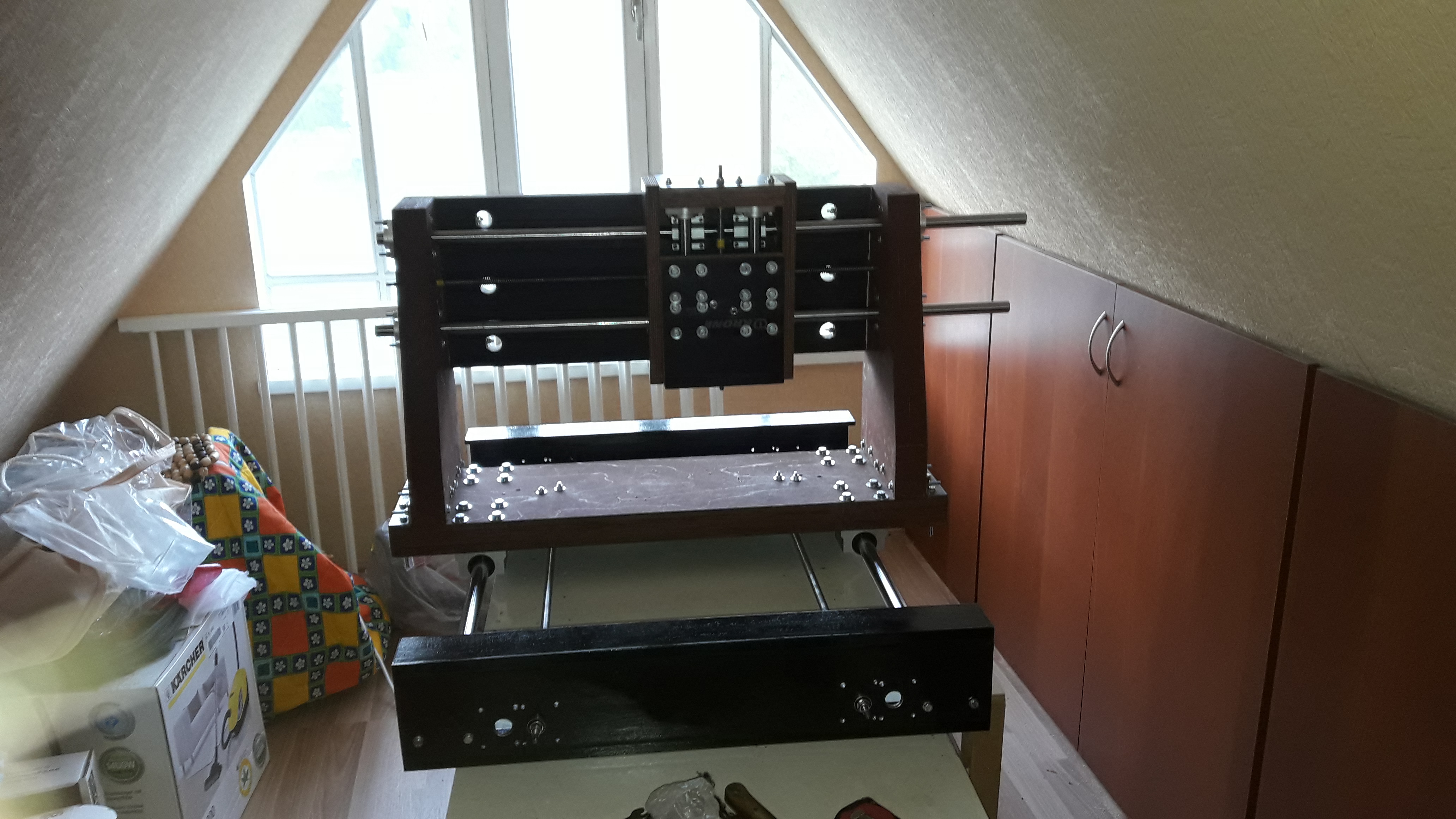 Да, хромированные(надеюсь :hehehe: , что не обманули ) Насчёт геометрии. Изначально были вырезаны 2 заготовки из 50мм фанеры и скреплены саморезами. Потом они одновременно выпиливались по шаблону и засверливались на сверлильном станке. Поэтому всё, почти, совпало, но пришлось с одной стороны, на верхнем валу, просверлить отверстие большего диаметра и посильнее затянуть ;) Это был не самый сложный квест... А вот потом подогнать 4 подшипника по оси У, что бы всё ездило как по маслу... Часа 3 ушло. Я думаю, что в металле, таких бы проблем не было. Или у меня руки из одного места :thinking: