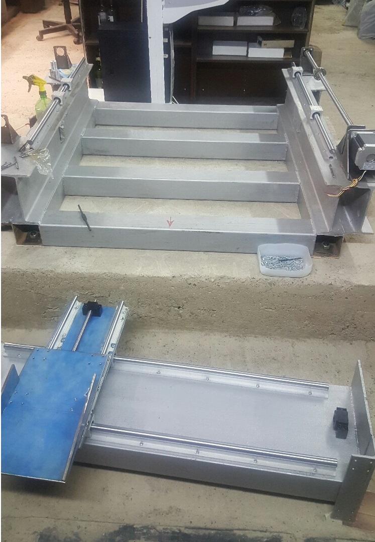 Прошу сильно не пинать. В программах проектировки не силен. Раму хочу сделать из профильной трубы 100х100х3мм (толще у нас не нашел). На раму поставить двутавр 20, у него высота 200мм и ширина 100мм, под ширину трубы. Все сварить и на верх двутавра (посередине) наварить полосу 5мм толщиной. Затем эти полосы отфрезеровать и поставить на них опоры. На опоры портал положить, конструкцию еще не придумал. Может портал еще поднять на 50-100мм, под длинну направляющих 500мм для оси Z . Ширина портала 1000мм или чуть больше, под направляющие. Стол сделать из алюминиевого профиля.
