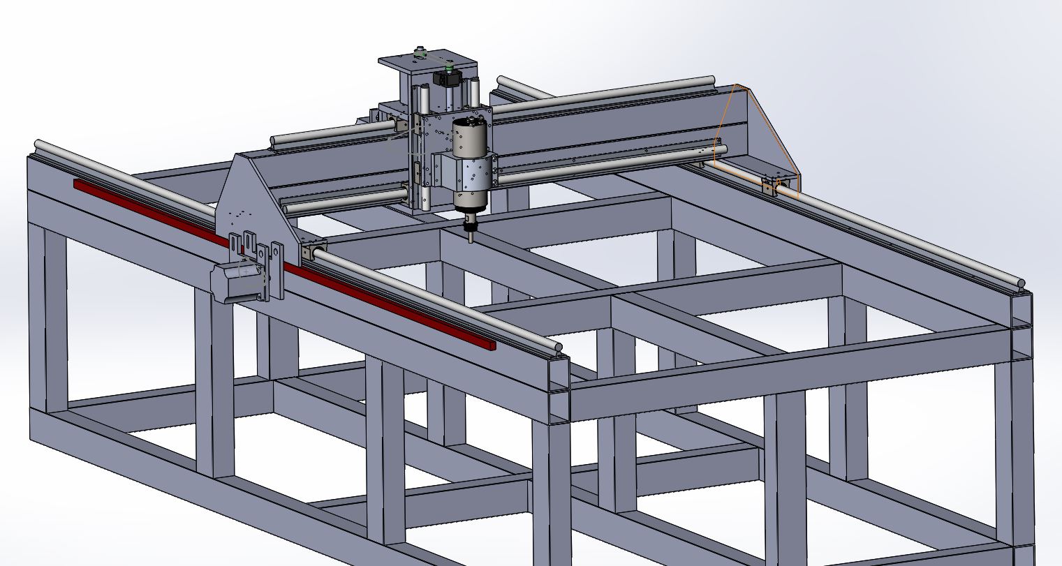 Планируется станок для раскроя и простой гравировки деревянных изделий. Рама вся сварная из профиля 60х80х3мм, делается сейчас на заводе с последующей фрезеровкой под направляющие. По осям X и Y будут прямозубые зубчатые рейки 15х20мм м1.5, на длинной оси два двигателя и две рейки. Шестерни для реек уже есть на 30 зубов, от двигателей будет ременной редуктор 1/5. На оси Z будет ШВП 1605 напрямую муфтой от двигателя (нужен ли редуктор?) С двигателями пока точно не определился, планирую получить подачи до 10м/мин. Управление - Mach3 с какой-нибудь простенькой ЛПТ платой.