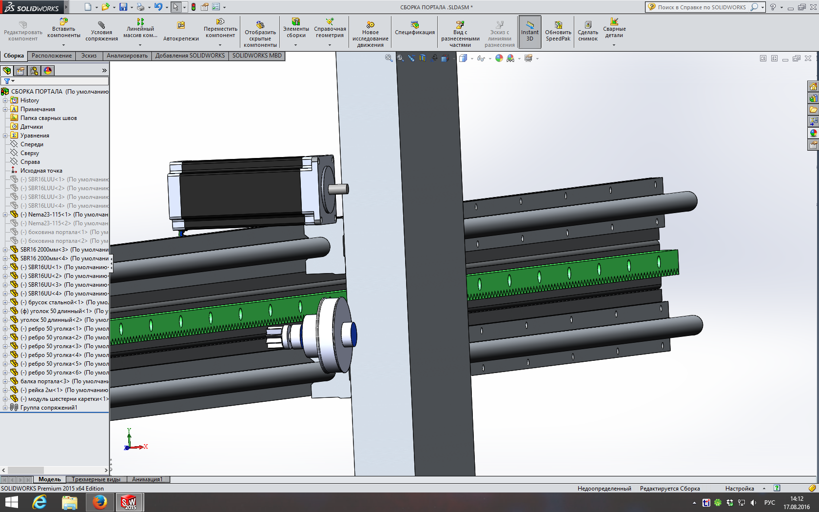 Для движения вдоль портала мотор с аналогичным редуктором. Длина рейки - 1 метр.
