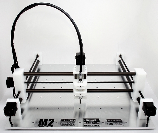 В качестве основания используется 6.35мм плита алюминия, на которой закреплены стойки осей X. Причем пишут, что рабочая поверхность выведена в ноль при помощи точной машинной обработки.