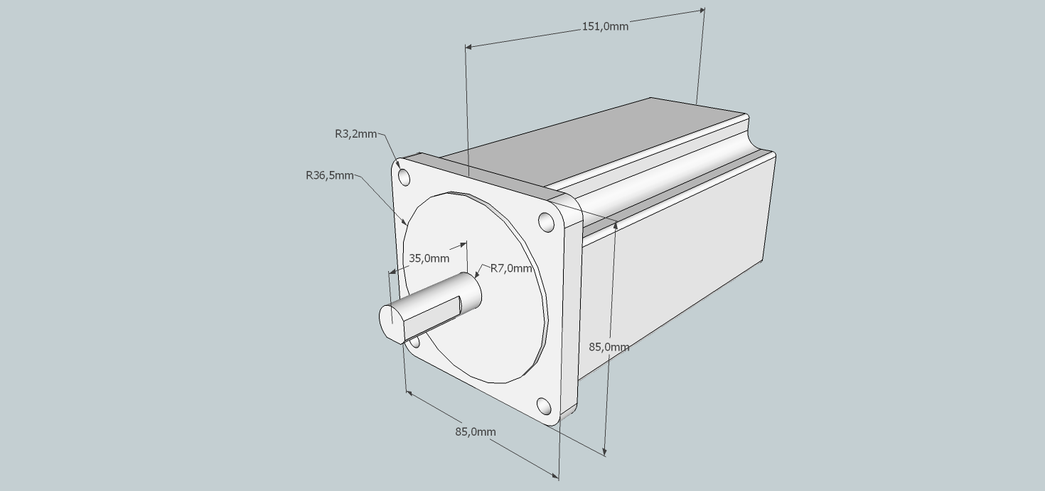 я хотел поставить 2 двигателя: Биполярный шаговый двигатель (2 обмотки, 4 вывода). Размер 86мм, угловой шаг 1.8 градуса, ток фазы 4.2А, сопротивление фазы 1Ом, крутящий момент 122кг*см, длина двигателя 151мм, вес 5кг, Момент инерции 3300 г.см, Момент удержания 122 кг.см