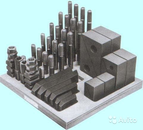 Набор предназначен для фиксации заготовок, деталей сложной формы при дальнейшей обработке на фрезерных, сверлильных и других станках , имеющих ширину паза 19.7-20мм на столе.