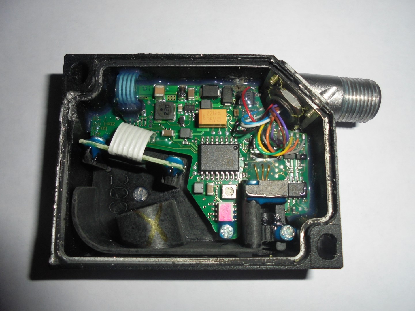 В разобранном датчике мы проц не нашли, возможно он снизу. И схема похоже на аналоговую. Вкл/выкл лазера отдельная схема, выход 0-10в или 4-20мА стоит специальная микруха.