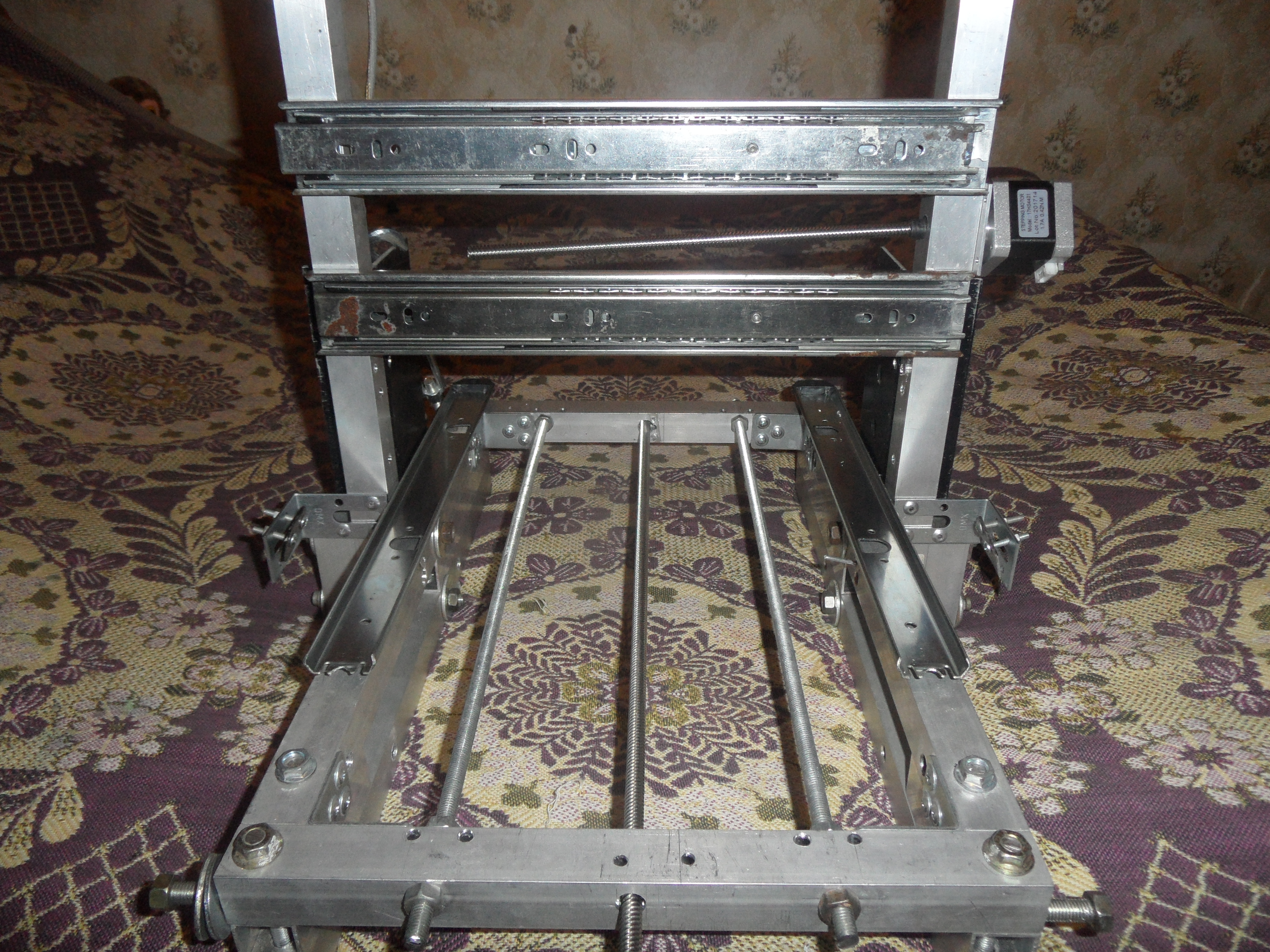 Мебельные направляющие, которые полностью разобрал, вычистил внутри, слегка подогнул бока,чтоб убрать по максимуму люфт и залил WD40. Раздвигаться стали очень легко. Стоять будут по осям Х и У, на оси З будут 8мм цилиндрические направляющие.
