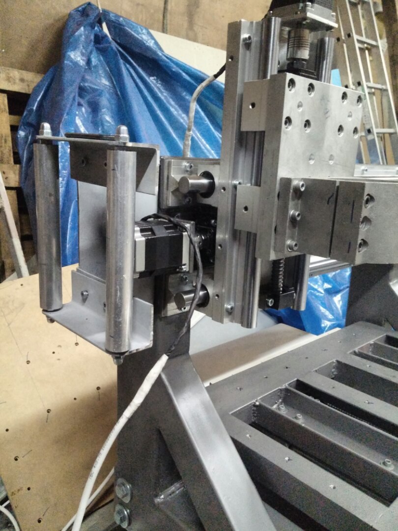 • Рама из профильной трубы 100х60х3мм + под "рельсы" и опоры ШВП приварена шина 60х8мм после чего фрезеровка за одну установку.