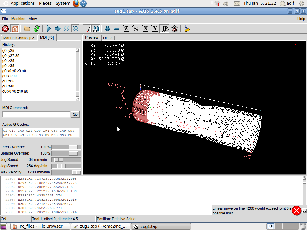 Программа красиво работала и вдруг полная остановка, на экране ошибка:, интуитивно понимаю что где то заканчивается предел оси, и это скорее всего ось А. Но, предел заканчивается на 4288 строке а на экране бегут 2293... В чем причина? И еще, вот остановилась программа а на какой именно строке не понятно, как узнать?