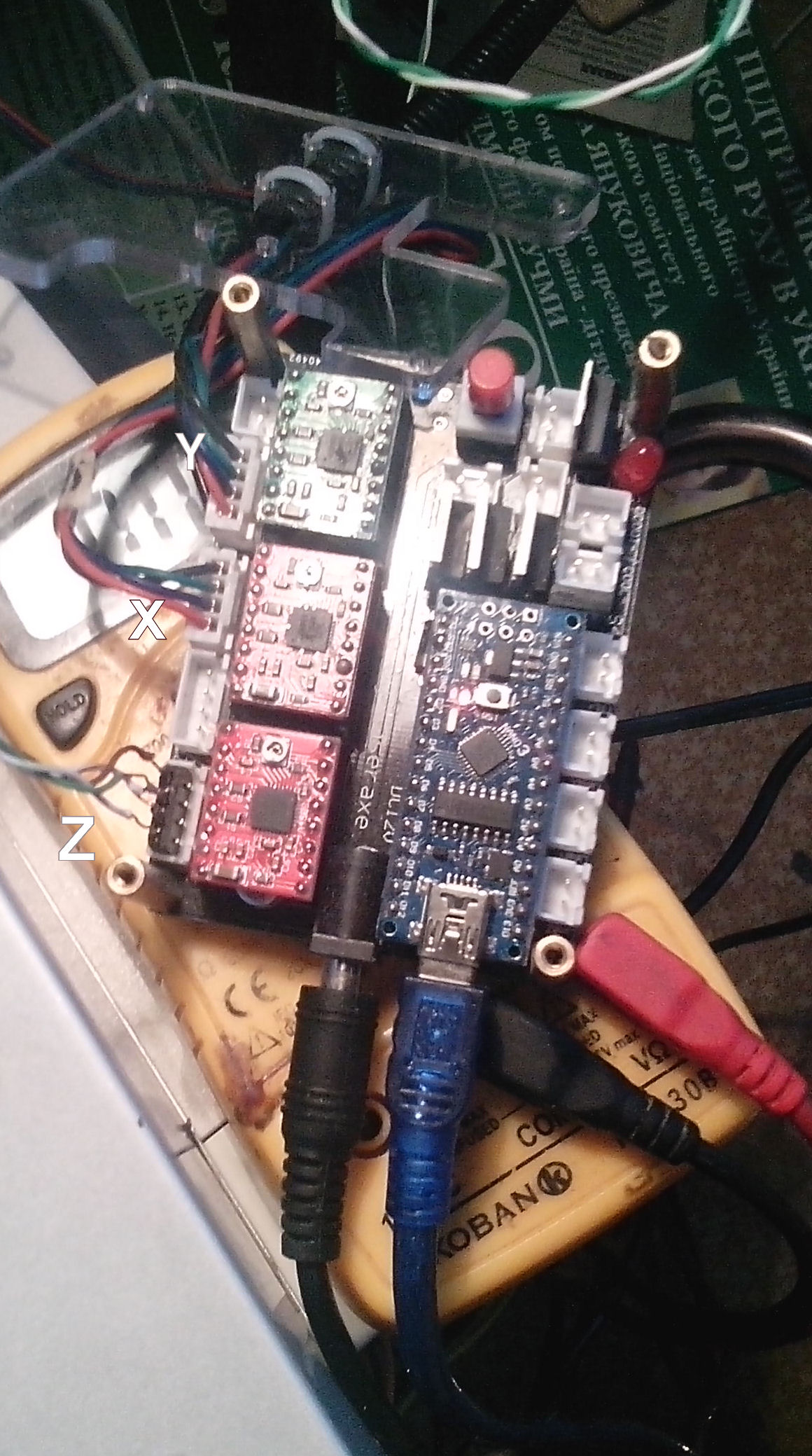 Такая проблема. Отдали за ненадобностью. Ну а я взял. китайский без лазера. два мотора. Лазер это дорого. Покупать слабенький - много дыма и никакого удовольствия. А мощные не по карману. Решил приделать 3тью ось. Но вот беда плата заточена на лазер. Для начала хотел бы понять можно ли эту плату переделать под шпиндель. Шпиндель должен не только вращаться но и ходить вверх ввниз. Какая может подойти к этой плате прошивка?