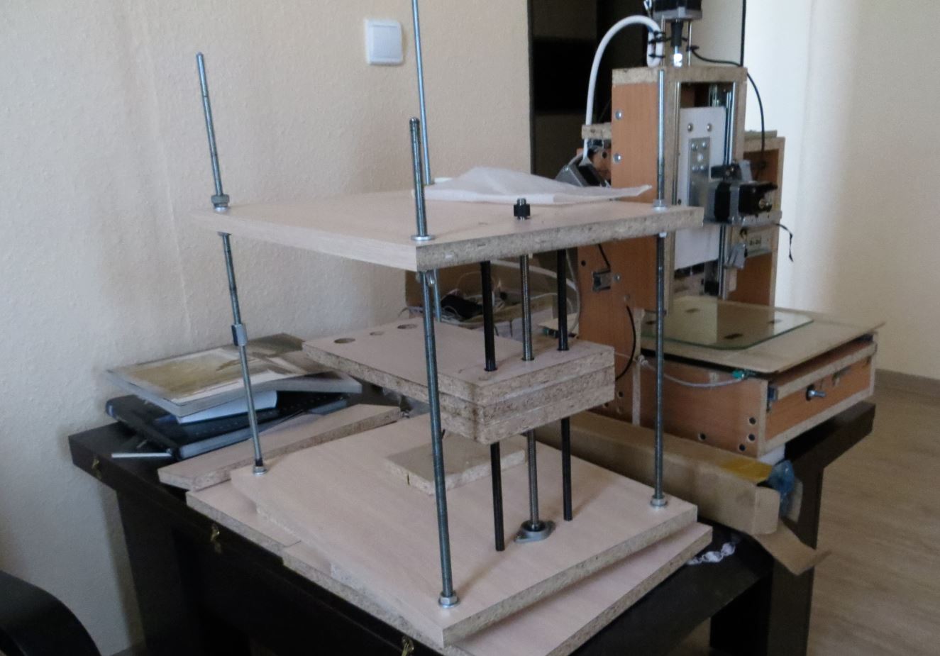 Двигатели XY, двигатель подачи пластика, мозги и блок питания будут установлены сзади, за фальшстенкой, и доступ к ним будет закрыт фанеркой 4 мм.