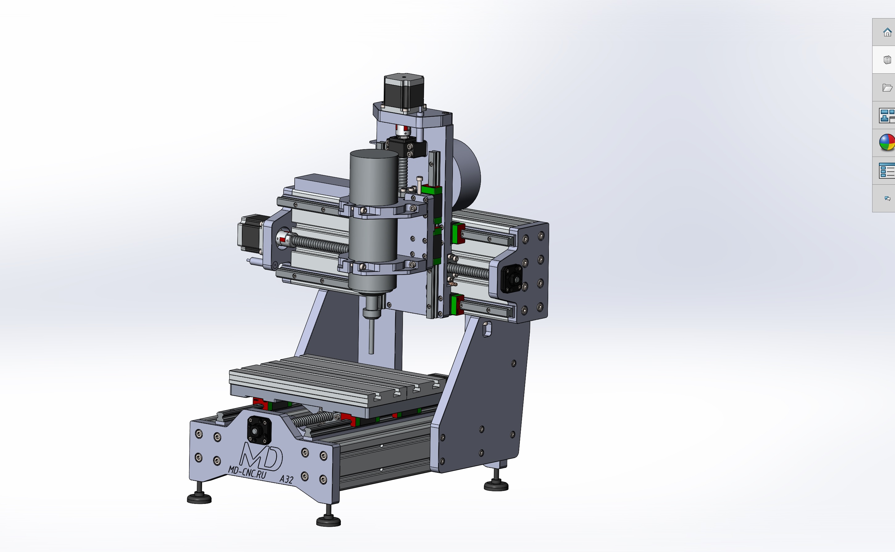 очередное творение на тему примитивных станков. вариант станка подобного этому http://www.cnc-club.ru/forum/viewtopic. ... 85#p370285 но с подвижным столом. как оказалось станки с подвижным столом конструктивно сложнее простых портальников и при проектировании этого станка был взрыв мозга ничего не сходится и не вяжется кроилово полное в итоге получилось что получилось вроде неплохо но деталек всеравно много. но зато они мелкие и данный станок можно легко сделать на его прородителе с полем 400х300.