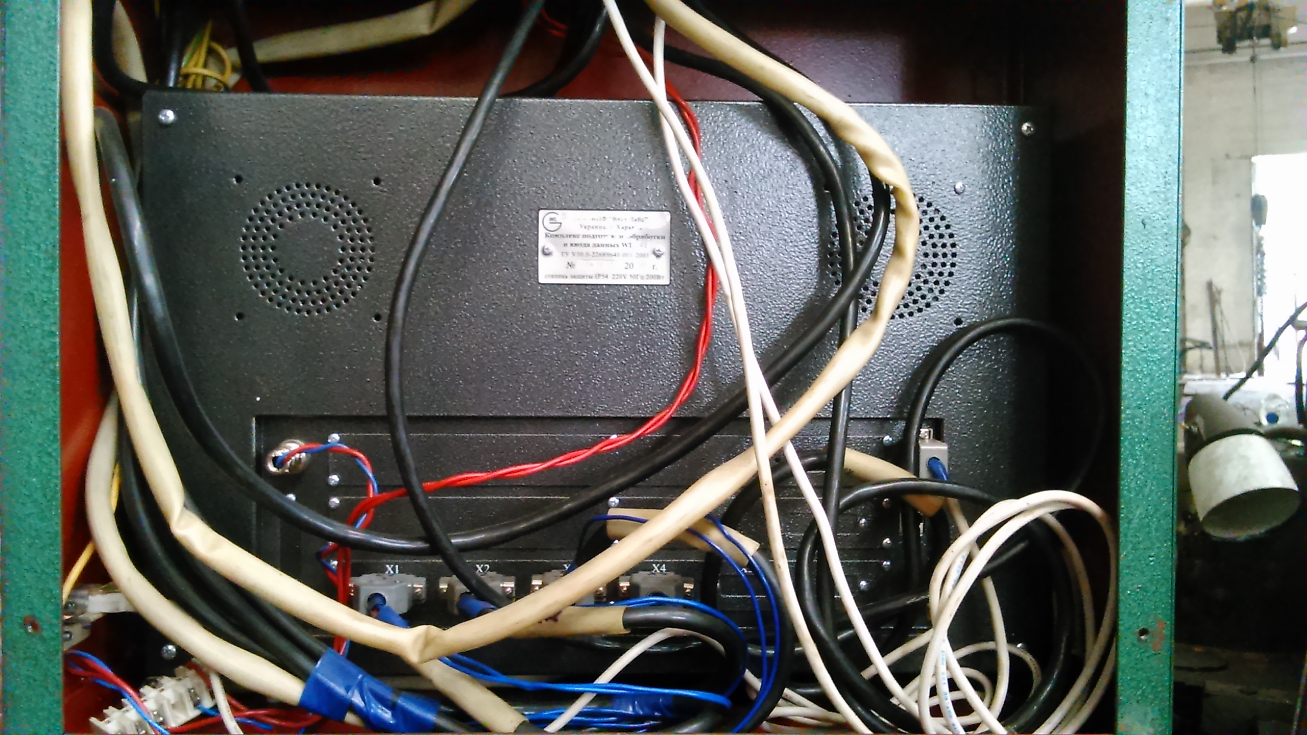 Существует распиновка, постараюсь на днях узнать! По фотам сто пудов нет полюса на вход, сфоткайте все шкафы, будет быстрее. Плюс идёт от моста через транс 380/19, после подачи общего питания, т.е. включили рубильник и возле него кнопка пуск.