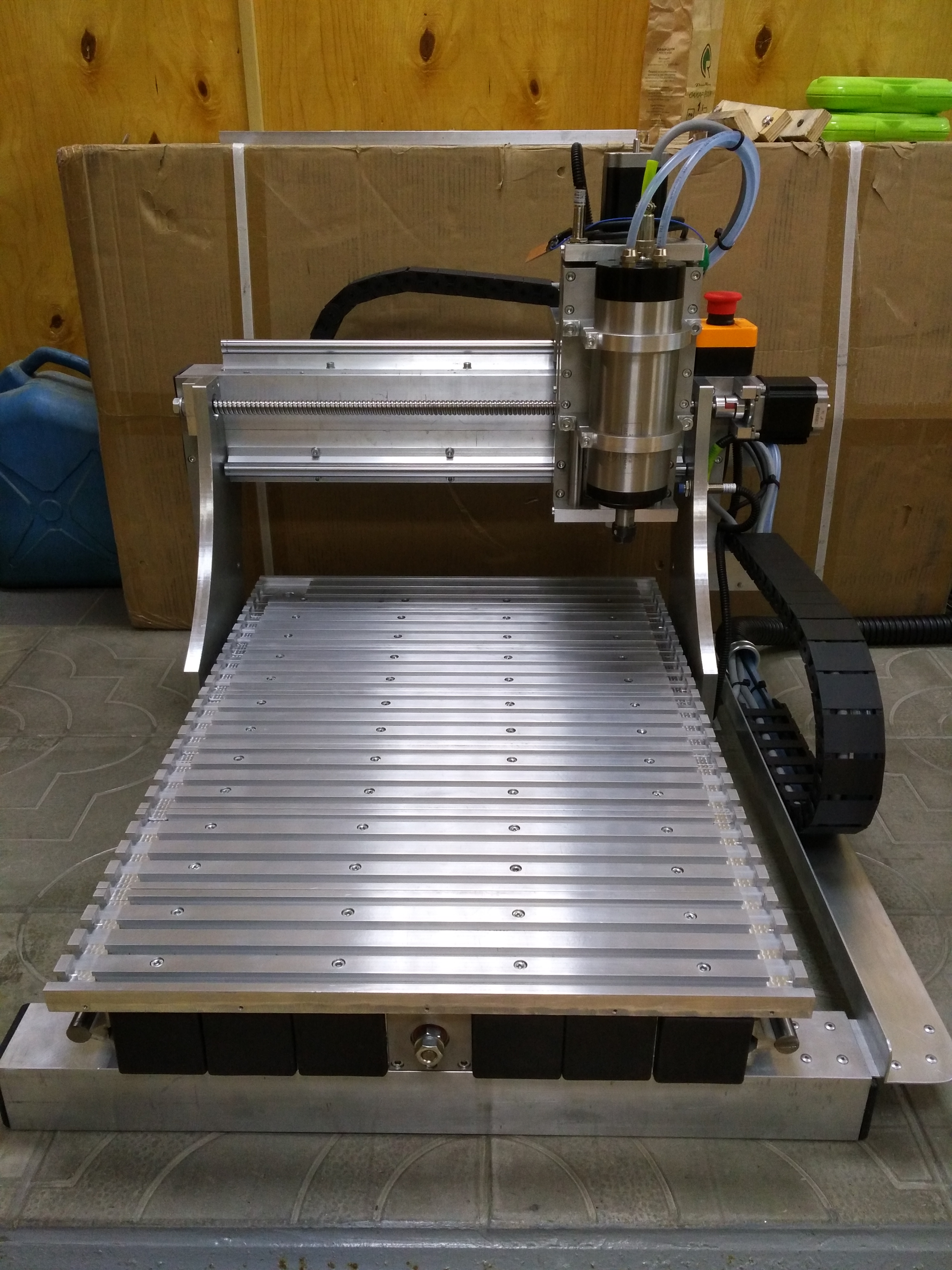 Механику собирал Евгений http://www.cnc-logic.ru В планах сделать основание для станка и до оснастить системой подачи СОЖ. Электроника самая не дорогая. Микро шаг 1/16, питание моторов 36V. В планах поменять драйвера и поднять питание до 48V. При обработке применялись новые фрезы 1. черновая KB3LX622 http://www.gravman.ru/tools_3_5.htm 2. чистовая KB3QX43012 http://www.gravman.ru/tools_4_13.htm