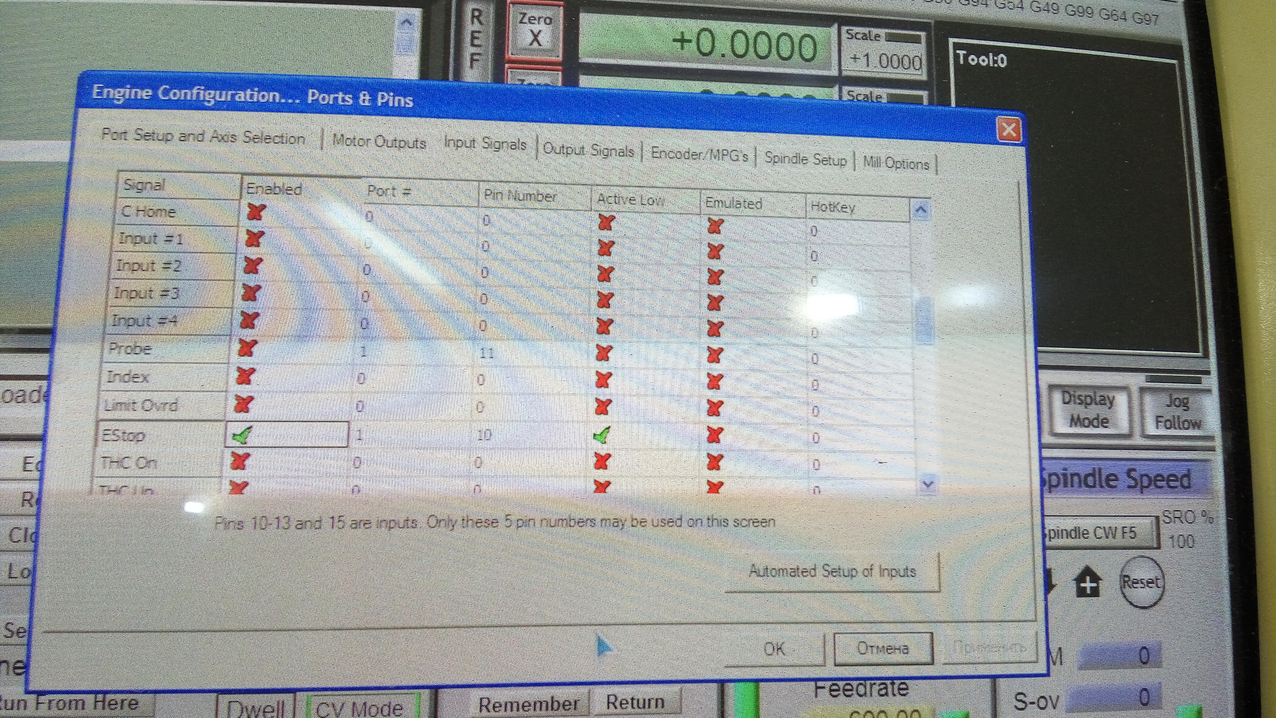 Не срабатывает при нажатии кнопка E-Stop (а без нее сами знаете в нашем пыльном деле никак :wik: ). Вроде подключил и в Mach3 галочки и номер пина прописал, а не срабатывает хоть ты тресни. Прилагаю фотки может увидите в чем косяк ;)