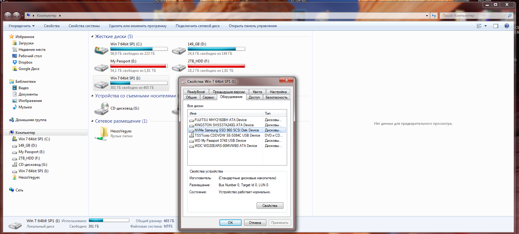 samsung 960 evo 500gb m.2 ну и nvidia quadro k5000 Правда осталось разобраться, как клонировать систему win7. (у меня система на SSD Kingston HyperX Savage 240 Gb)