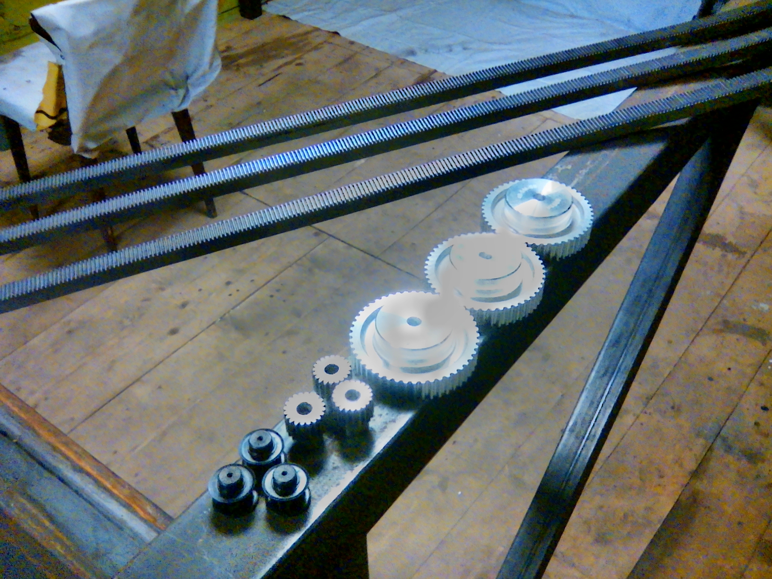 Заказал три рейки 15х15х2000 ст45 м1, к ней ведущую шестерню с 20 зубьями, три шкива 48 зубьев, столько же с 12 для редукторов, тоже м1.