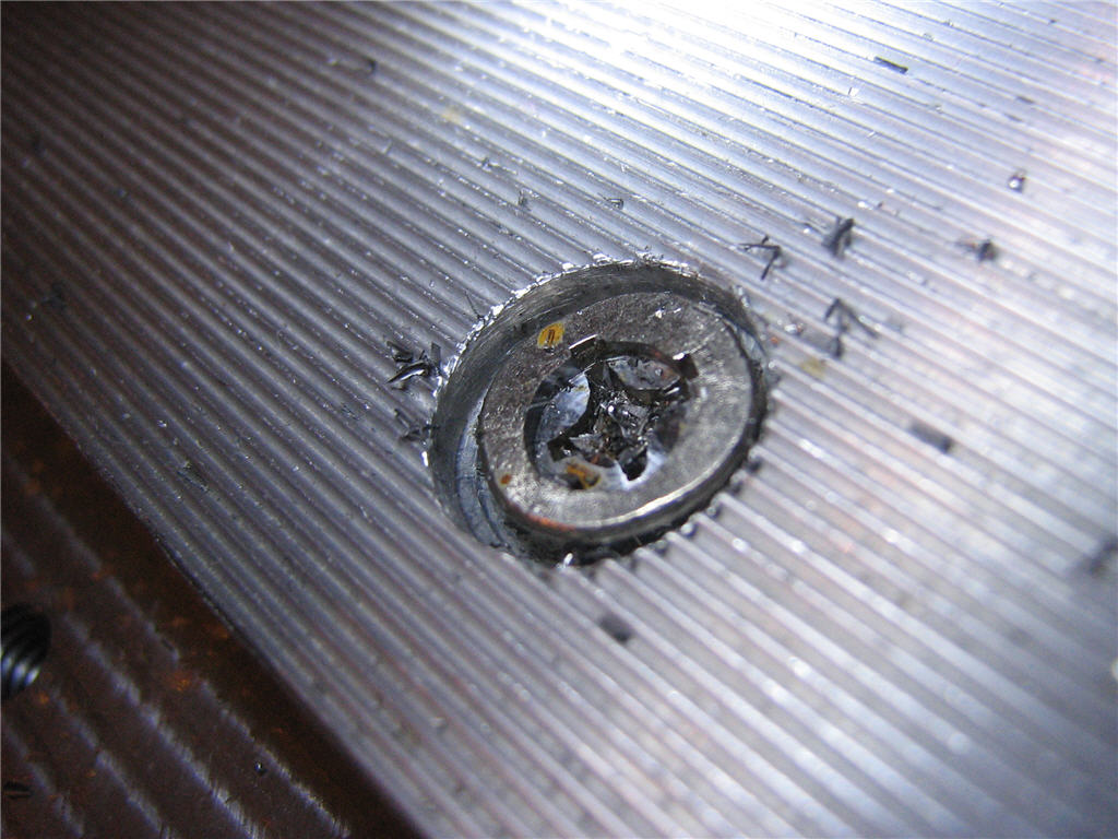 а вот фото результата,тогда только было не 0,511,а больше миллиметра.отцентровал по дырке,х,у-в ноль,отъехал,болт вкрутил,вернулся,ноль по зет поставил.включаю,а он дует вниз :o ещё б и вбок поехал,как бывало,да выключить успел