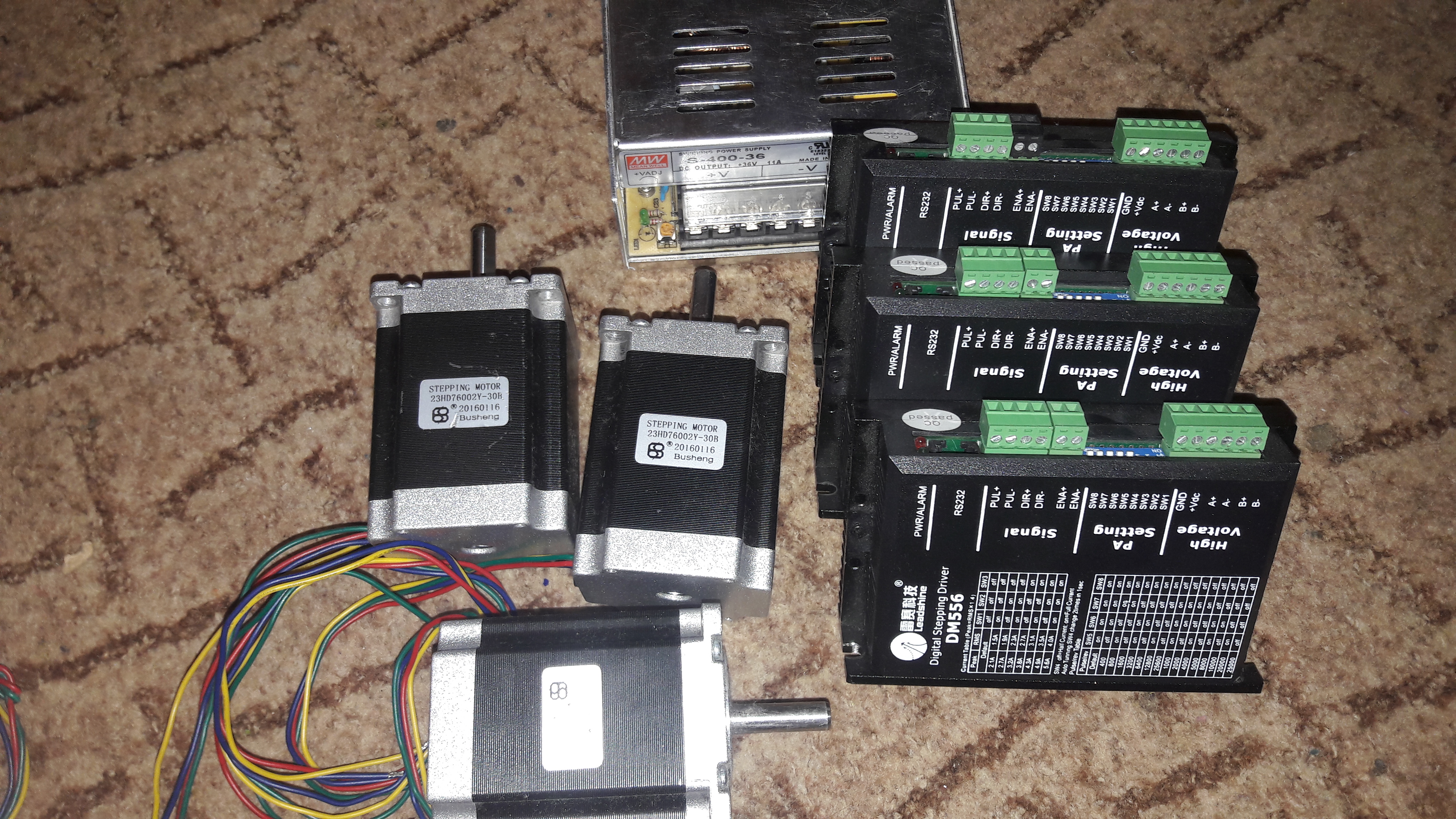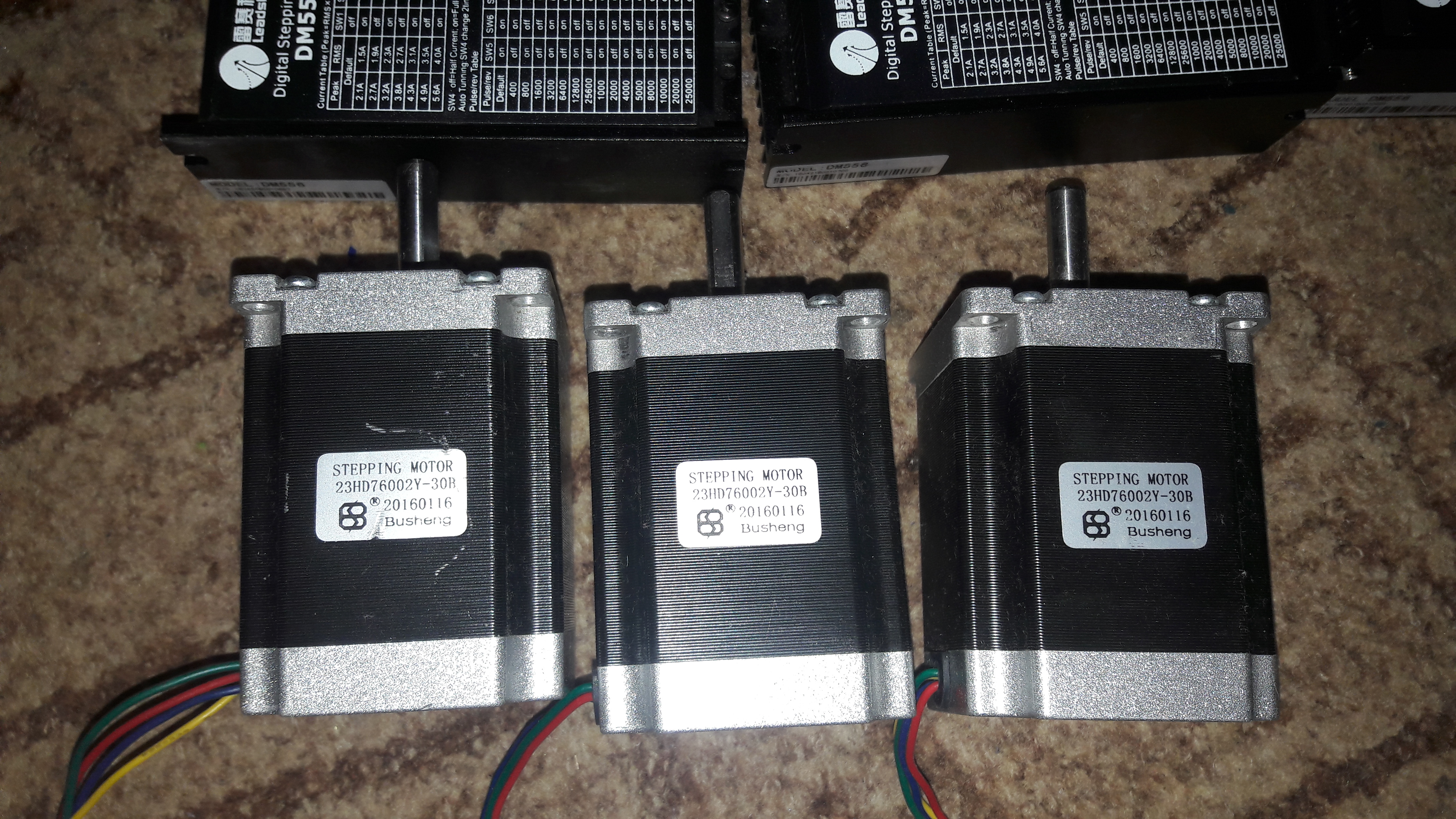 Добрый вечер! Продам новый комплект: 3 полностью цифровых драйвера Leadshin DM556 и 3 мотора нема 23 76 типа размера на 18кг с диаметром вала 8мм . И блок питания на 400W 36v. Цена обсуждаема 15000 р. Отправлю куда угодно за ваш счет ТК. Оплата на карту сбербанка.