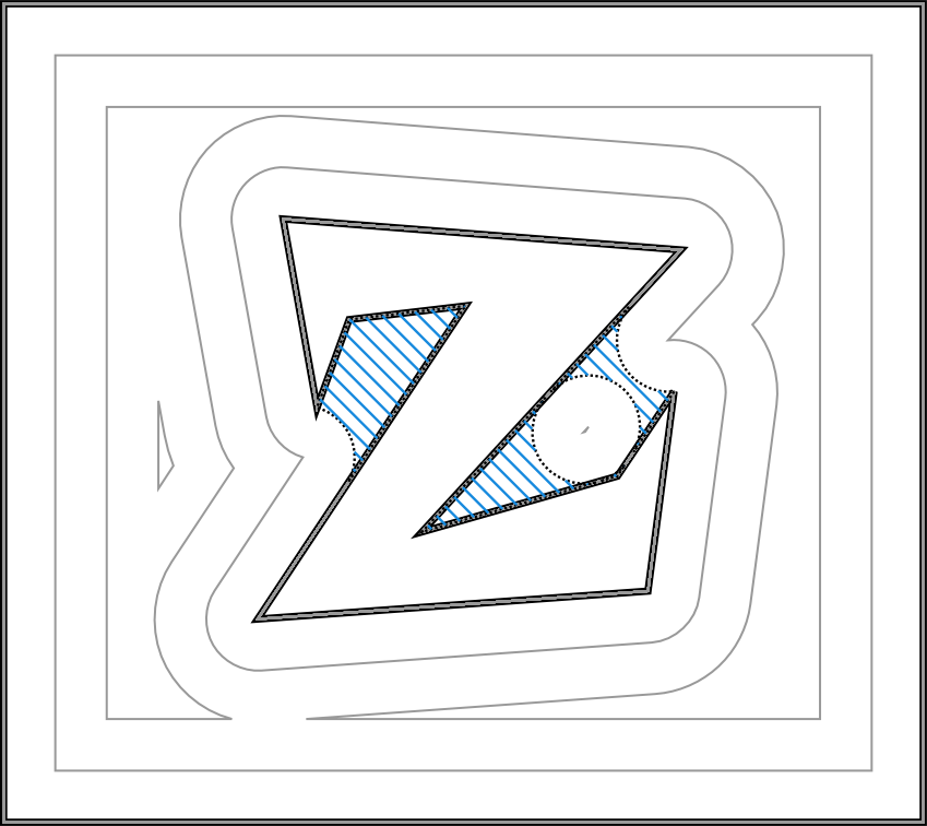 Что делать с изображением в Inkscape и как сделать УП в gcodetools? Самое не понятное здесь -- как вычислить площадь/объём того, что ещё не сняла первая фреза, но должна снять вторая.