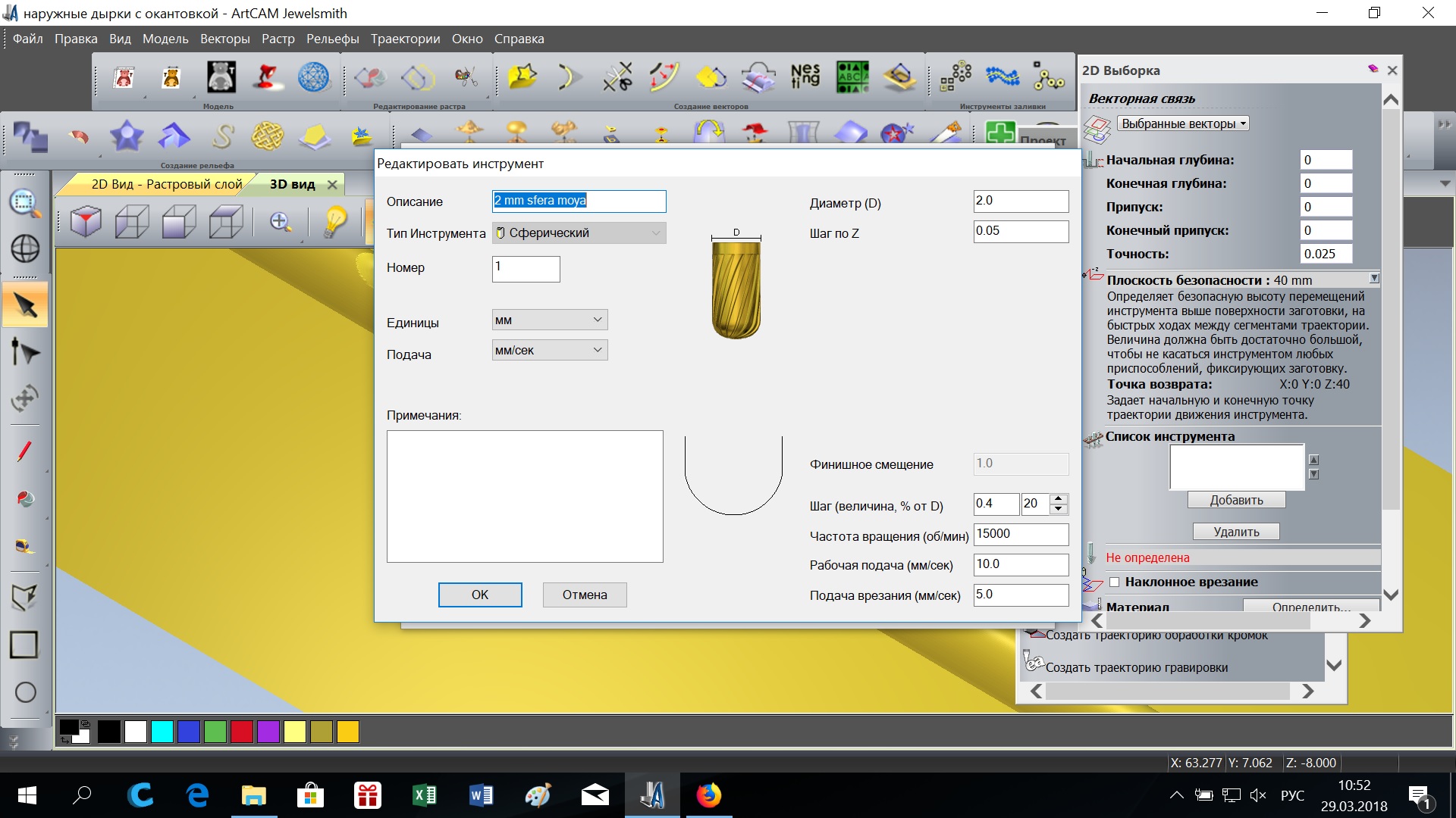 фреза вот такая самая маленькая 1 мм сфера. боюсь ее вставлять даже (по 800 рублей каждая) уже на 5000 наломал наверное.