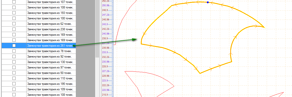 Спасибо. Так у меня это тоже одна траектория. Но, при сильном увеличении выделенных мест на фото, виднеются две очень маленькие пипки, которые к контуру не прикосаются. Вот хочу понять это у меня проблема при импорте или они там действительно есть.