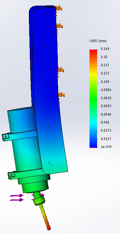 И, кстати, если опять же верить солиду-то самое слабое звено не сама плита, а кронштейны шпинделя, в них больше всего напряжений (ну сам шпиндель в расчет брать сложно по понятным причинам)