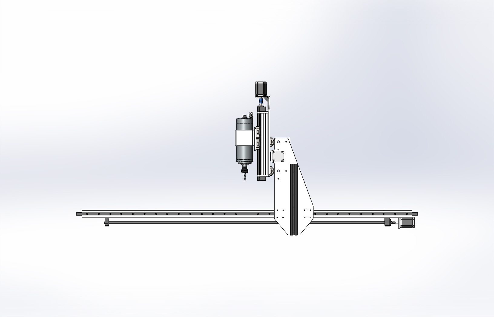 Боковины портала разверните, установите на портале плиту, связав тем самым профили конструкции. И самое главное, висячий стол станиной не является. У Вас один вал по оси X, ширина портала 800 мм и очень шаткая конструкция станины. Жесткости нет совсем. Станок будет не квадраты фрезеровать, а шестиугольники. Раму стола нужно делать пространственной, укосины везде где можно установить.