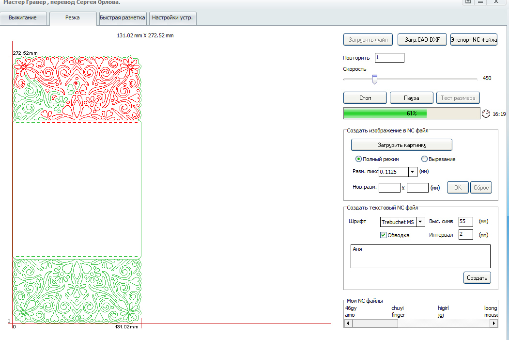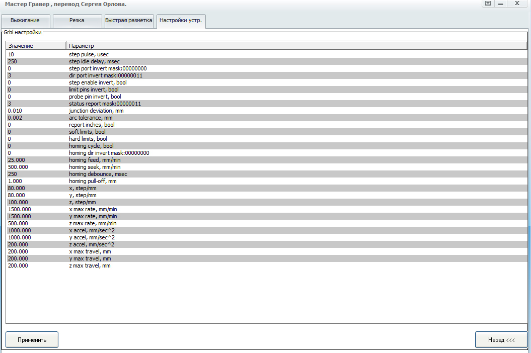 Добрый день всем. Имеется китайский лазерный гравер с модулем 5.5Вт. Подключен без ТТЛ, модуль питается с платы на которой расположена ардуина. Для резки использую Engraver Master с прошивкой grbl_v0.9j. Настройки в энгравере прикладываю в картинке к посту. Столкнулся с проблемой, при резке получаются пропуски "реза", иногда по 2-3мм а иногда и пару сантиметров может пропустить. Пробовали загружать и просто рисунок с контуром в растре, и буквы резать, и dxf файлы. в 80% случаев где то допускает пропуск. Возможно кто то с этим уже сталкивался и сможет сразу подсказать причину. Не исключено что где то в настройках прошивки возможно нужно что то изменить.