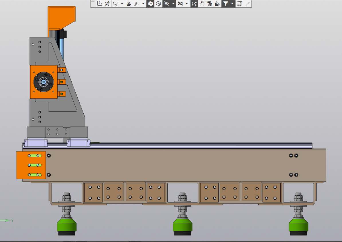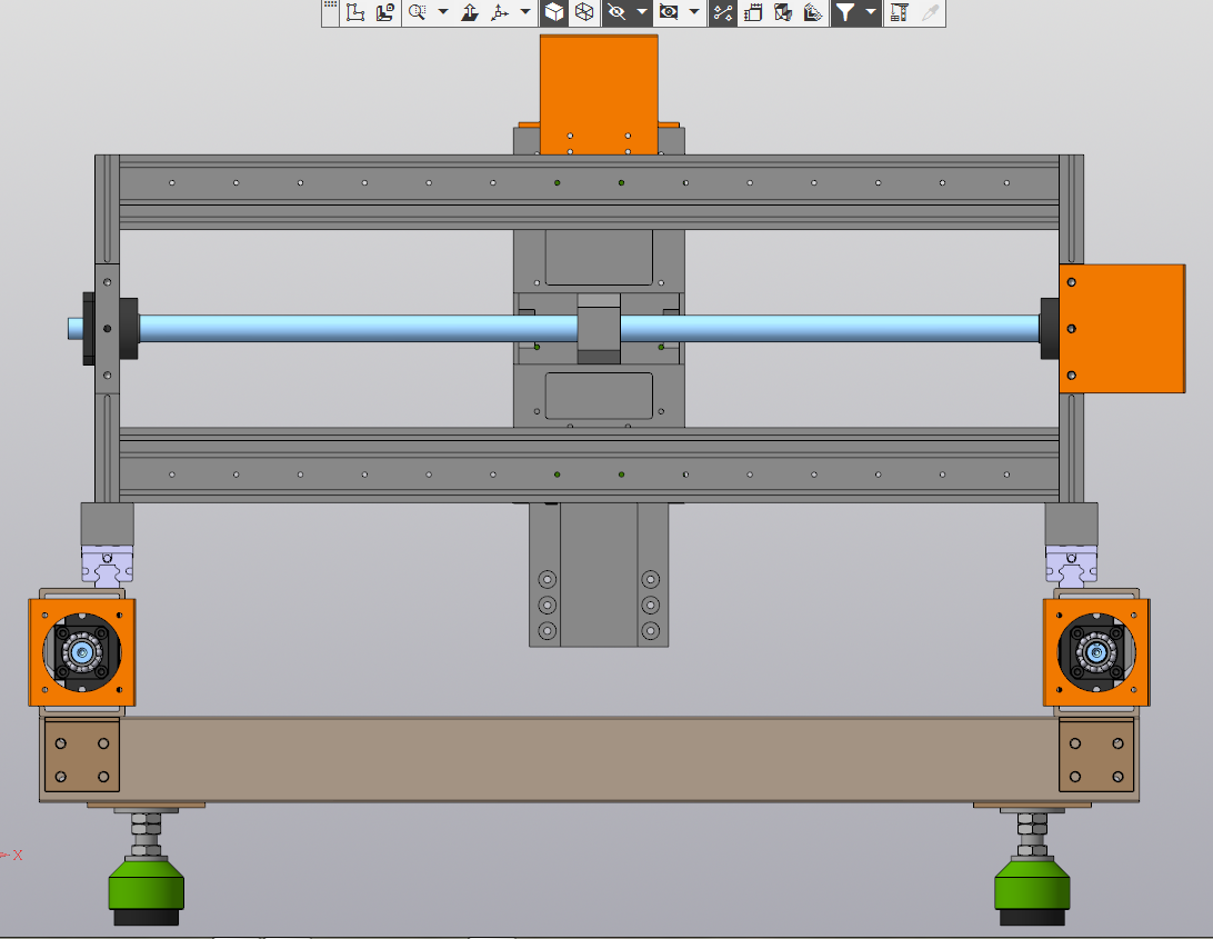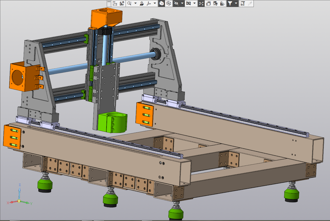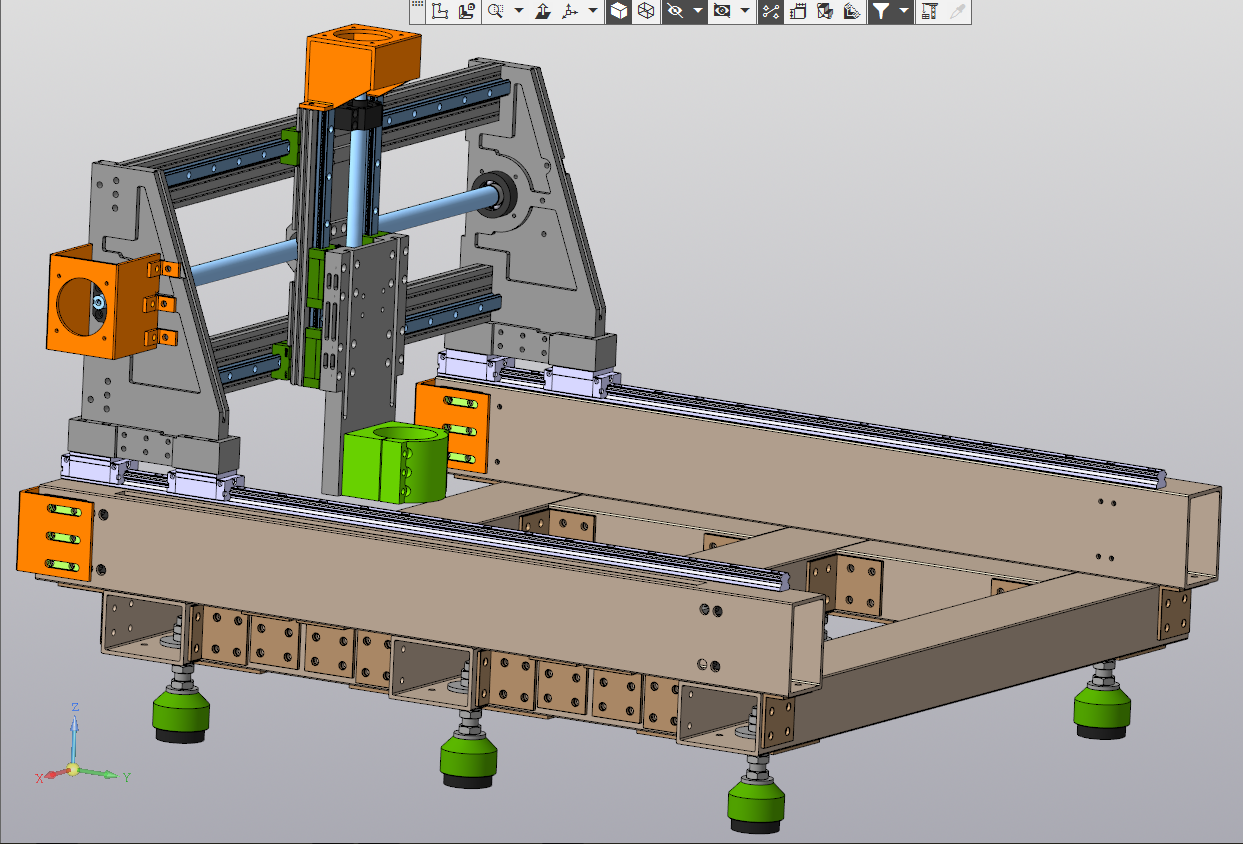 Рисовал в Компасе. До болтов не добрался. И с креплением портала с гайками швп еще не определился, несколько вариантов. Стол тоже не дорисовал, не знаю какой конфигурации и расположение пазов. Шаговики также не нарисовал.