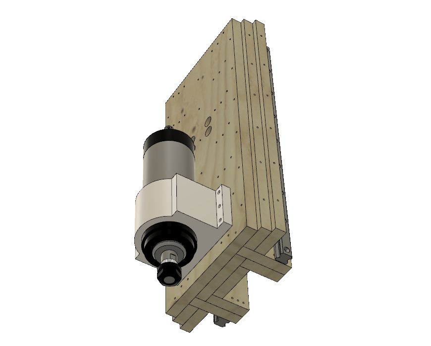 - Проблема - любые конструкции фанерных карет не могут обеспечить должную жёсткость для хода по Z в 200мм. Пробовал три разных варианта, последний был самым удачным. Но даже при нём, в самом нижнем положении Z-ки, отклонение на быстрых подачах могло быть до 1мм.
