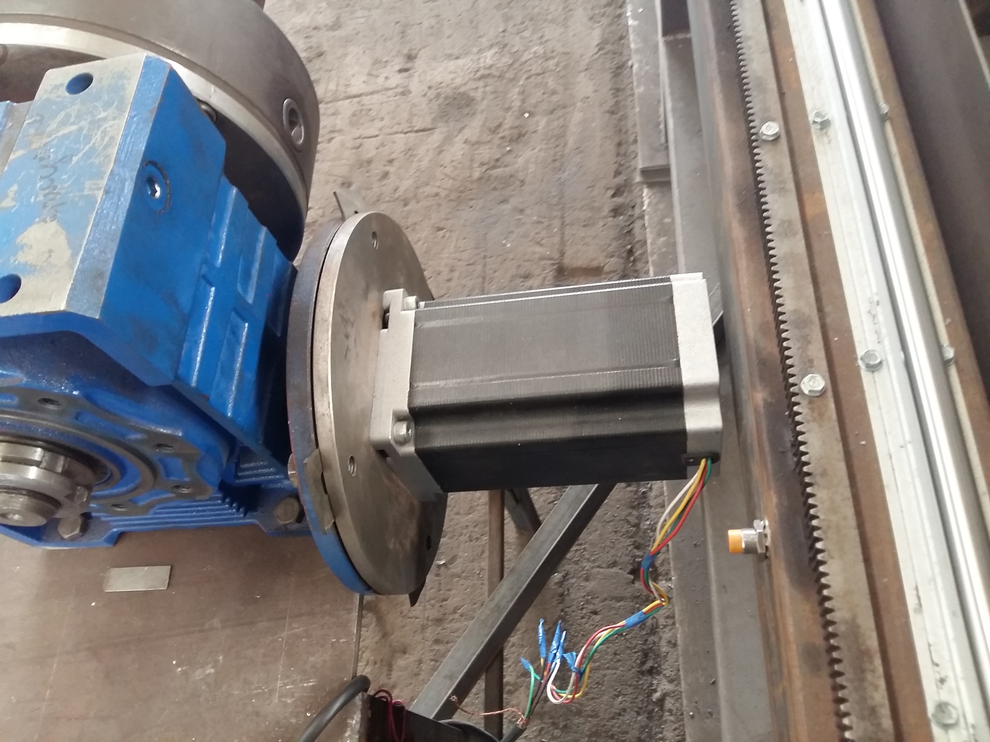 В процессе сборки решил сделать еще и труборез. Балка Y выходит за пределы рабочего поля портала, где будет расположена поворотная ось А (Шаговый двигатель SM110HT201-8004A с червячным редуктором передаточное число 1:40, трехкулачковый токарный патрон).Так же будут изготовлены роликовые люнеты, поддерживающие трубу во время вращения (длина обрабатываемой трубы будет 6м, т.е. на всю длину портала)