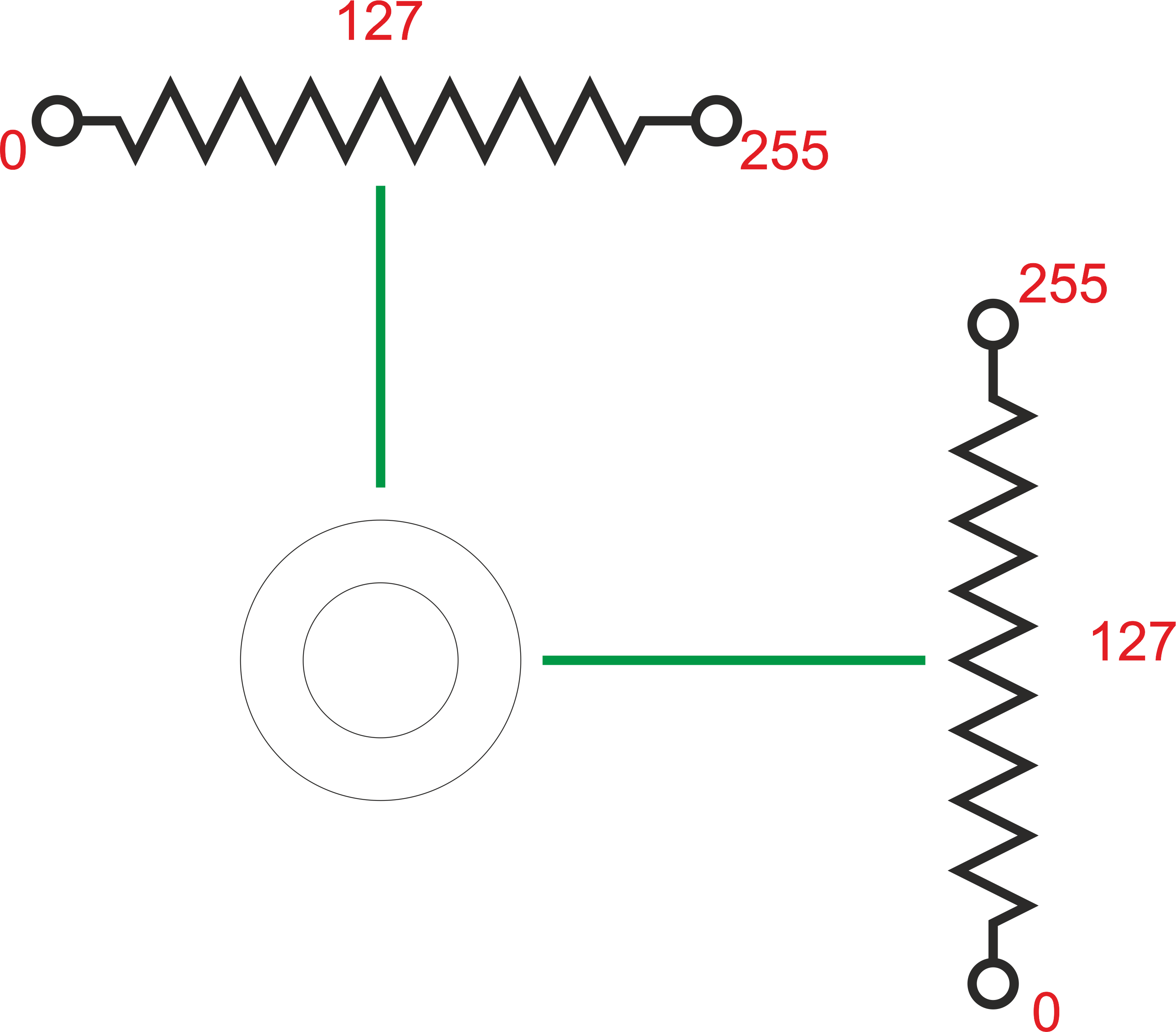 Допустим АЦП у нас 8-битный, имеем значения при джойстике в нулевом положении по X и Y =127