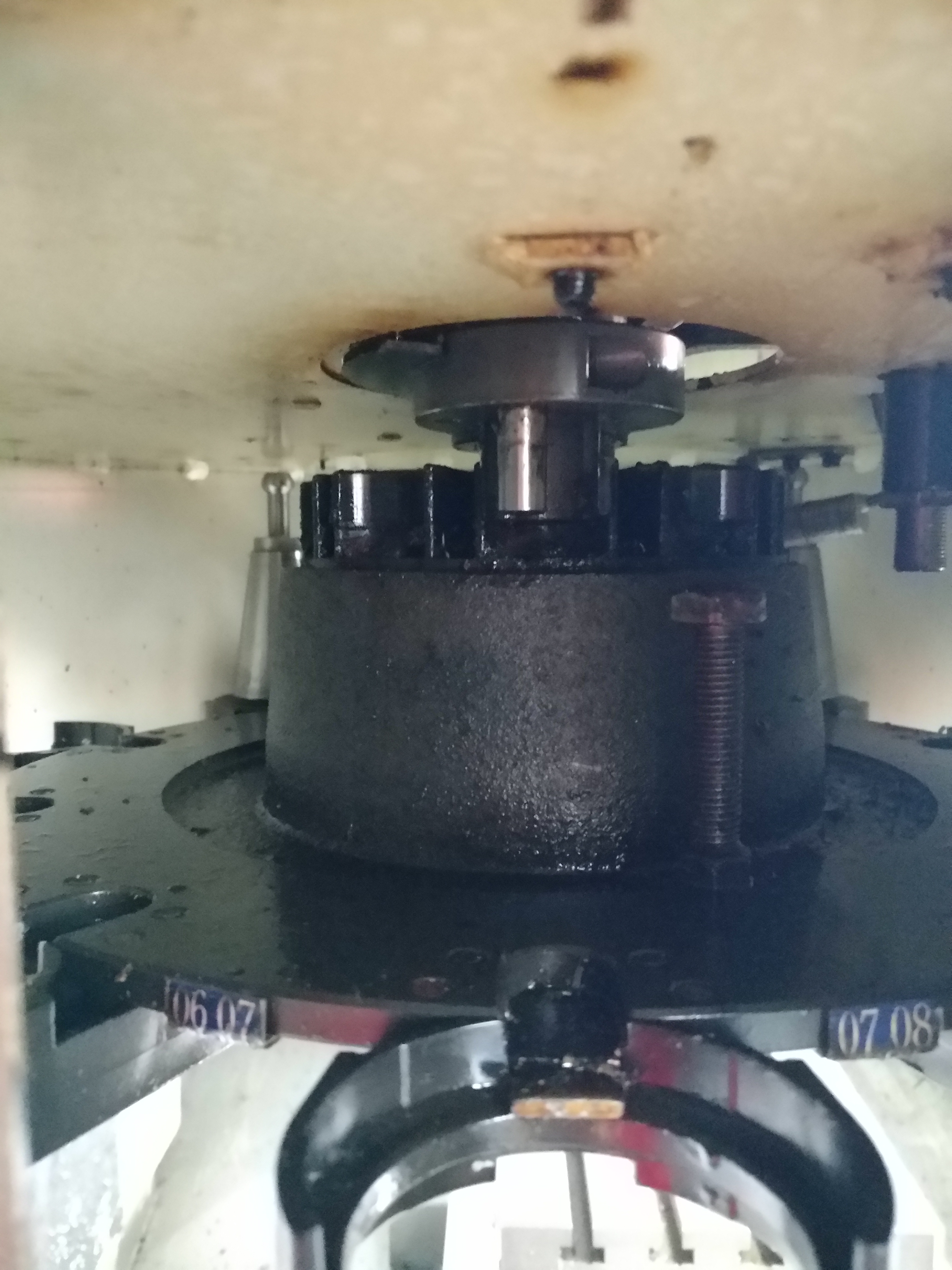 Консоль и магазин крепятся без возможности регулировки, тупо на болты без всяких развальцованных отверстий. Но есть вал, по которому катается магазин при смене, и который крепится к станку шестигранным болтом, как вариант можно толстую шайбу выточить и тем самым смещение дать. На это, конечно, просто дикий объем работы, там вообще всё разбирать придётся. Буду ждать вашего ответа, может увидите какой-то вариант.