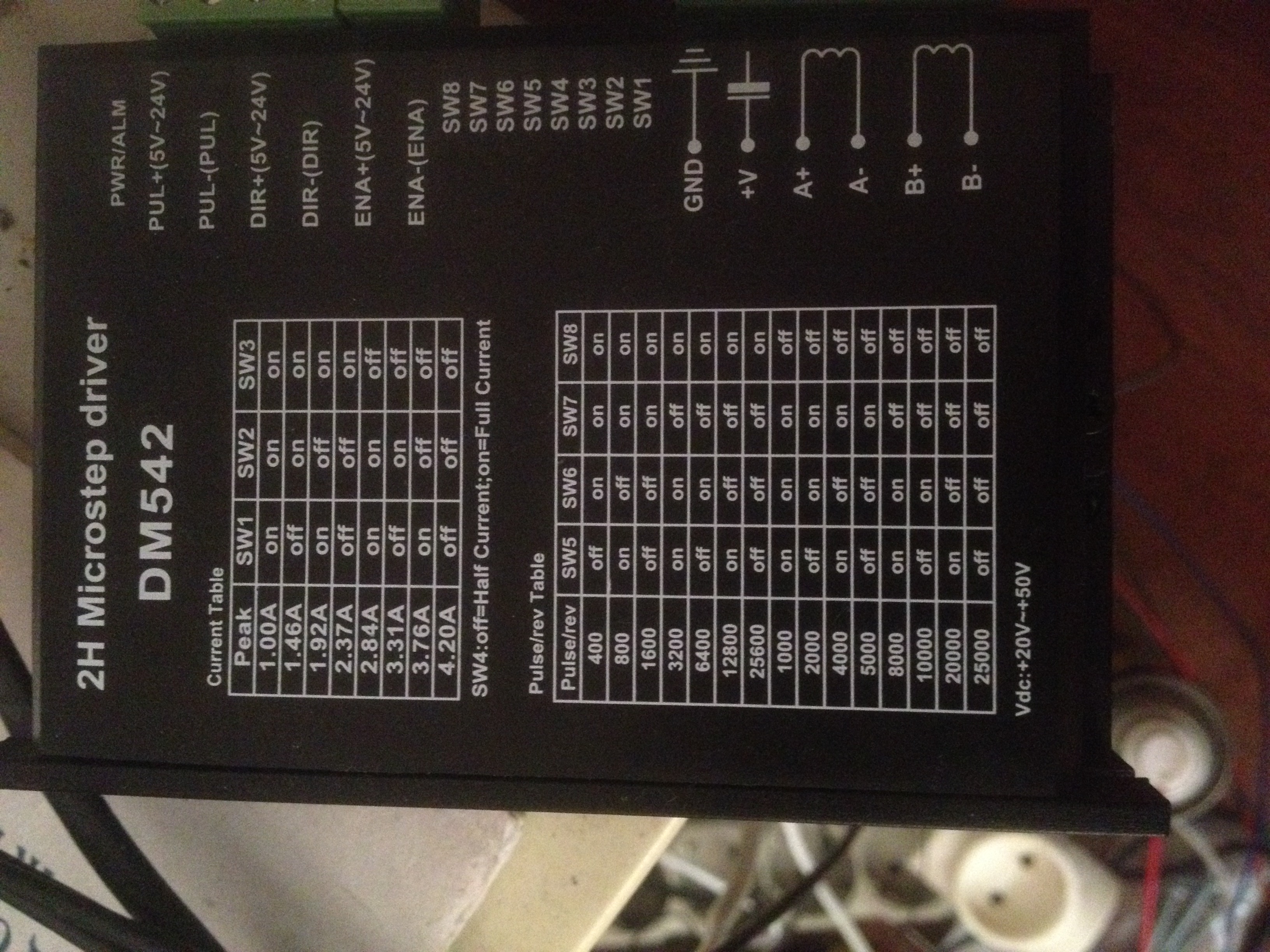 Драйвер DM 542, выставлено 400 микрошагов, Это самое маленькое значение.1 ампер. SW4=ON