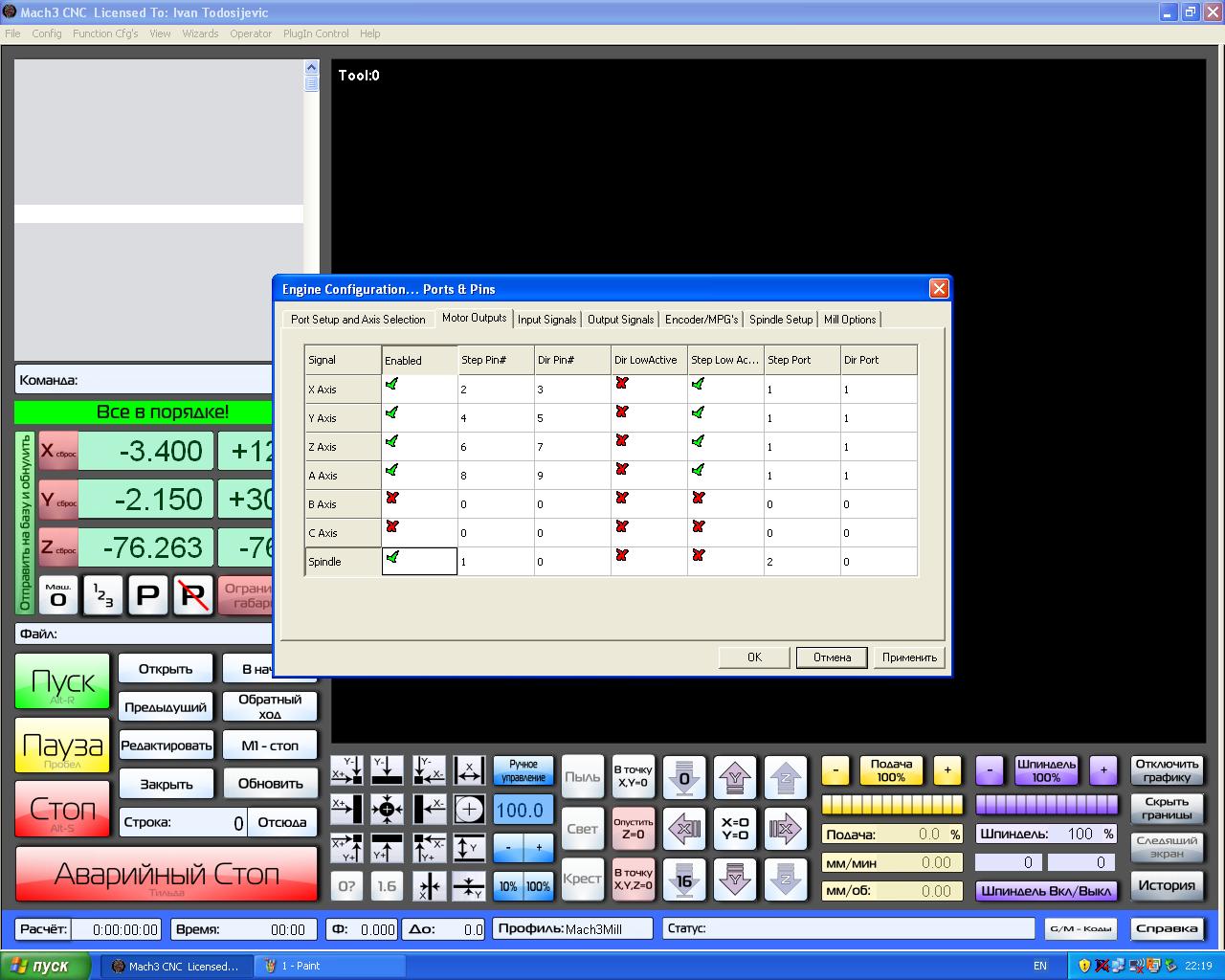 Шпиндель не управляется из MACH3 , в ручном режиме и при запуске g-кода.